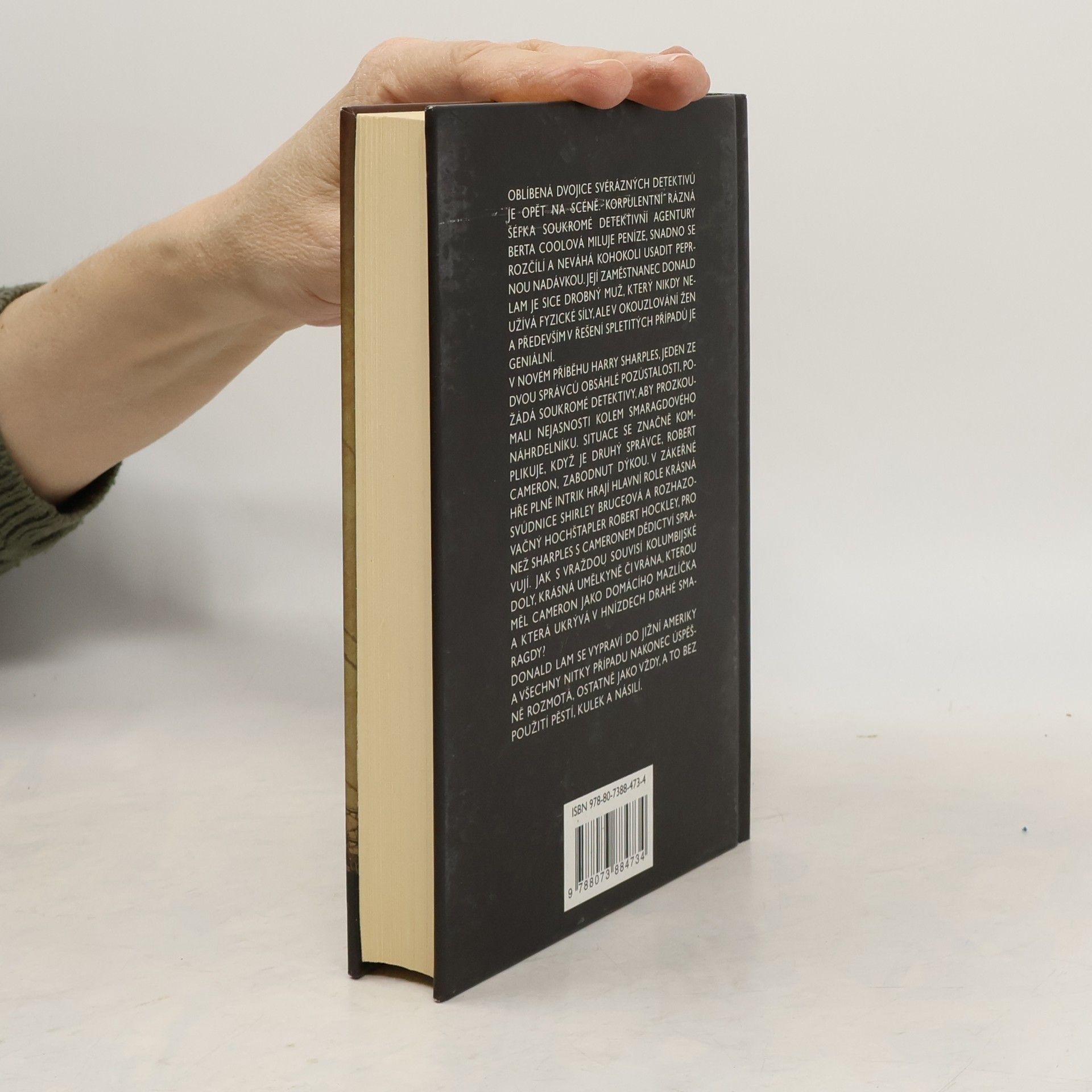 Oblíbená dvojice svérázných detektivů je opět na scéně. Korpulentní rázná šéfka soukromé detektivní agentury Berta Coolová miluje peníze, snadno se rozčílí a neváhá kohokoli usadit peprnou nadávkou. Její zaměstnanec Donald Lam je sice drobný muž, který nikdy neužívá fyzické síly, ale v okouzlování žen a především v řešení spletitých případů je geniální. V novém příběhu Harry Sharples, jeden ze dvou správců obsáhlé pozůstalosti, požádá soukromé detektivy, aby prozkoumali nejasnosti kolem smaragdového náhrdelníku. Situace se značně komplikuje, když je druhý správce, Robert Cameron, zabodnut dýkou. V zákeřné hře plné intrik hrají hlavní role krásná svůdnice Shirley Bruceová a rozhazovačný hochštapler Robert Hockley, pro než Sharples s Cameronem dědictví spravují. Jak s vraždou souvisí kolumbijské doly, krásná umělkyně či vrána, kterou měl Cameron jako domácího mazlíčka a která ukrývá v hnízdech drahé smaragdy? Donald Lam se vypraví do Jižní Ameriky a všechny nitky případu nakonec úspěšně rozmotá, ostatně jako vždy, a to bez použití pěstí, kulek a násilí.