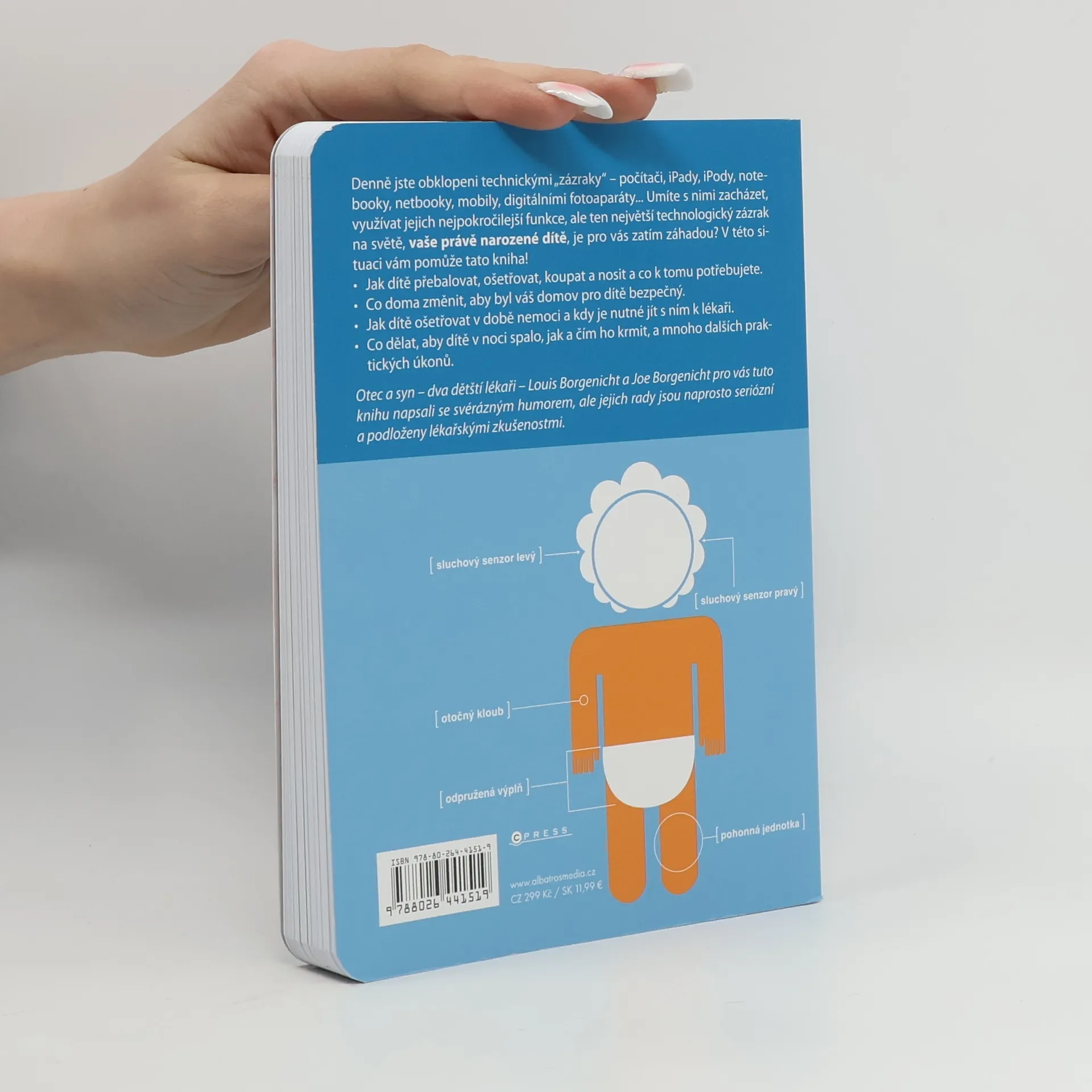 Seriózní publikace určená rodičům malého dítěte, napsaná ovšem s nemalou dávkou svérázného humoru. Design i ilustrace v knize napohled evokují technickou příručku nadšeného kutila, rady v knize však napsal dětský lékař, a týkají se kompletní péče o kojence - přebalování, krmení, manipulace s dítětem, koupání, uspávání, co dělat v případě konkrétní nemoci, sledování zdravého vývoje a mnoho dalších naprosto praktických rad.