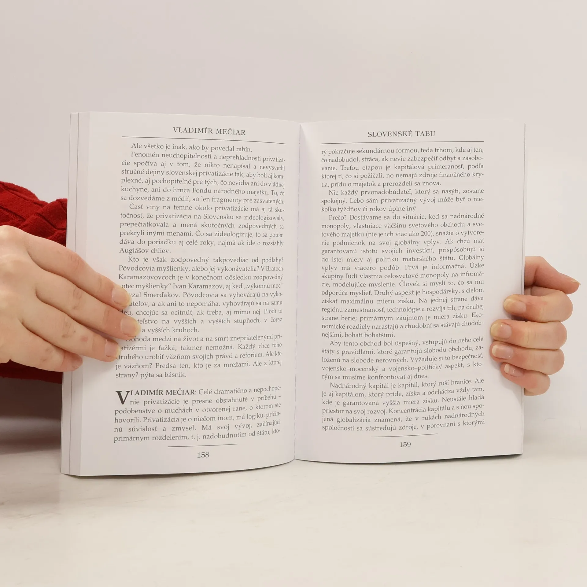 Kniha trojice autorov: Vladimíra Mečiara, Dany Podrackej a Ľuby Šajdovej poskytuje ucelený pohľad na slovenskú politiku a spoločenské dianie od novembra 1989 až po rok 2002. Text je rozčlenený do dvoch častí: Slovenské tabu – eseje a úvahy a Ľudský portrét politika.