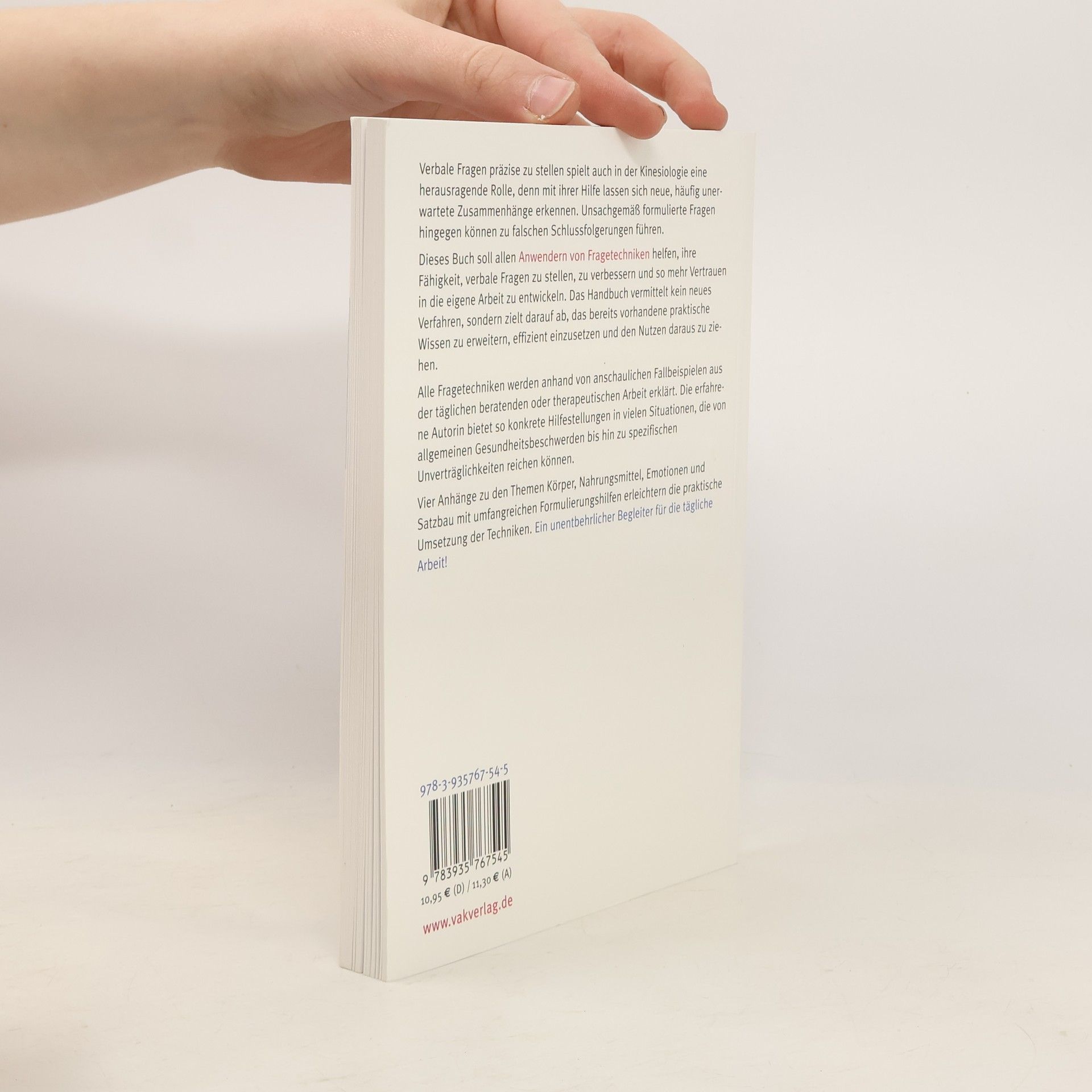 Verbale Fragen präzise zu stellen spielt besonders in der Kinesiologie ein wichtige Rolle, denn unsachgemäß formuliert können sie zu falschen Schlussfolgerungen führen. Das Buch soll Anwendern von Fragetechniken helfen, Ihre Fähigkeit, verbale Fragen zu stellen, zu verbessern und so mehr Vertrauen in die eigene Arbeit zu entwickeln. Es vermittelt kein neues Verfahren, sondern zielt darauf ab, das bereits vorhandene praktische Wissen zu erweitern und effizient einzusetzen. Mit umfangreichen Formulierungshilfen zur Erleichterung der praktischen Umsetzung.