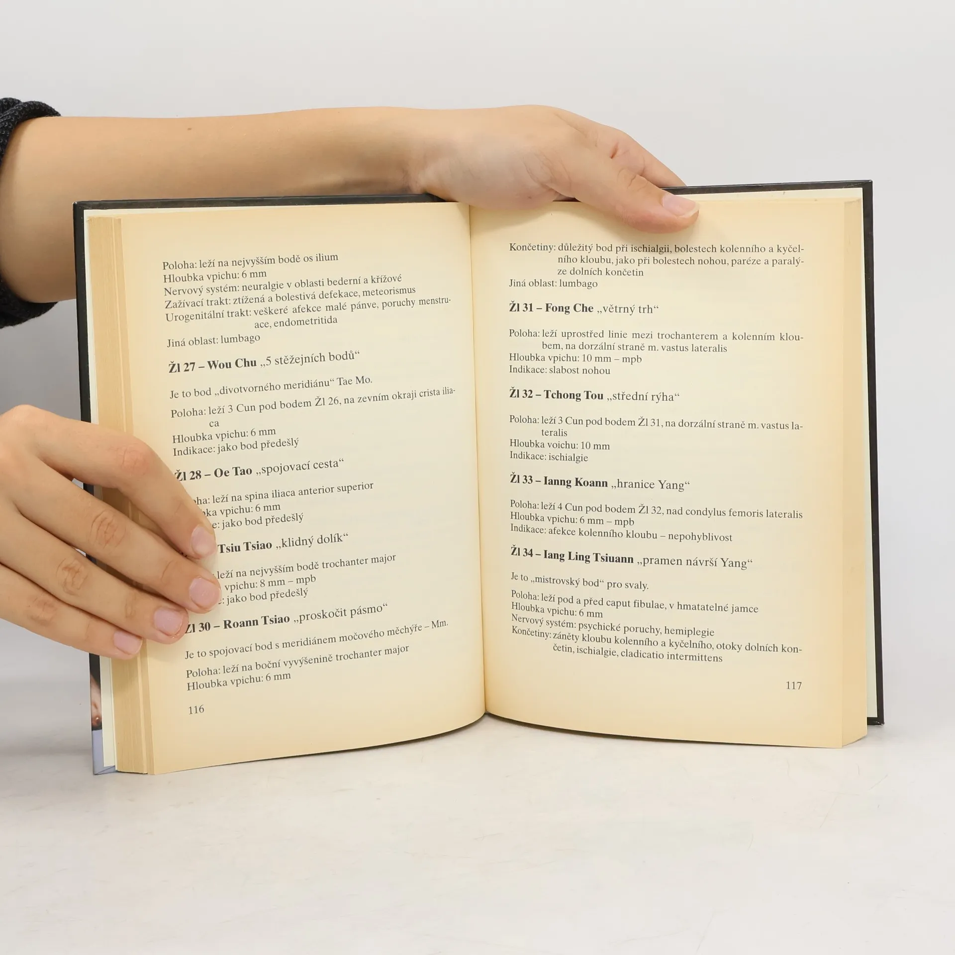 Publikace je základním přehledem poznatků o akupunktuře. Po stručném pojednání o jejím vývoji v Číně tvoří hlavní část knihy přehled všech akupunkturních bodů na meridiánech a jejich vliv na nemoci lidského těla.