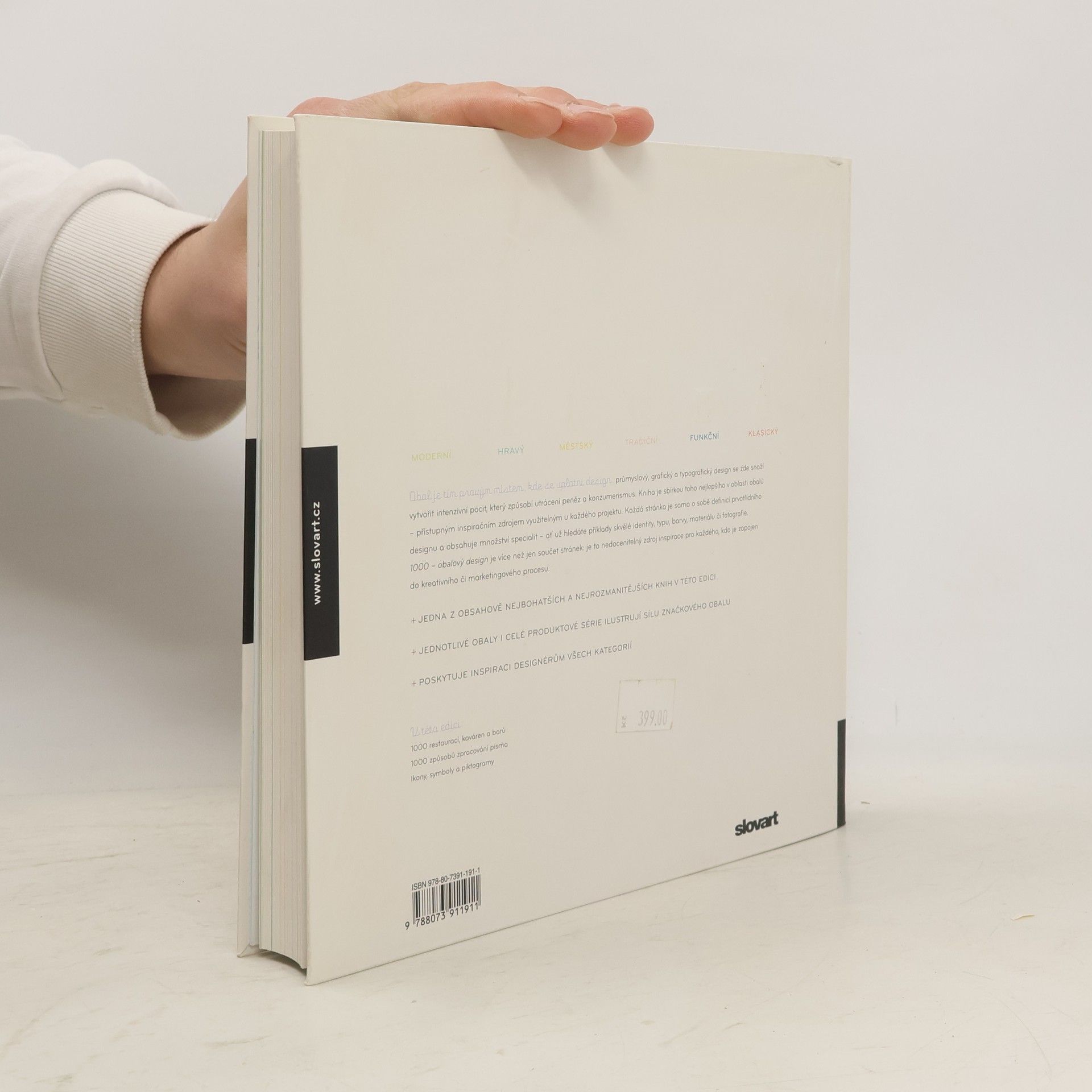 Obal je tím pravým místem, kde se uplatní design: průmyslový, grafický a typografický design se zde snaží vytvořit intenzivní pocit, který způsobí utrácení peněz a konzumerismus. Kniha je sbírkou toho nejlepšího v oblasti obalů - přístupným inspiračním zdrojem využitelným u každého projektu. Každá stránka je sama o sobě definicí prvotřídního designu a obsahuje množství specialit - ať už hledáte příklady skvělé identity, typu, barvy, materiálu či fotografie. 1000 obalových materiálů je více než jenom součet stránek: je to nedocenitelný zdroj inspirace pro každého, kdo je zapojen do kreativního či marketingového procesu.