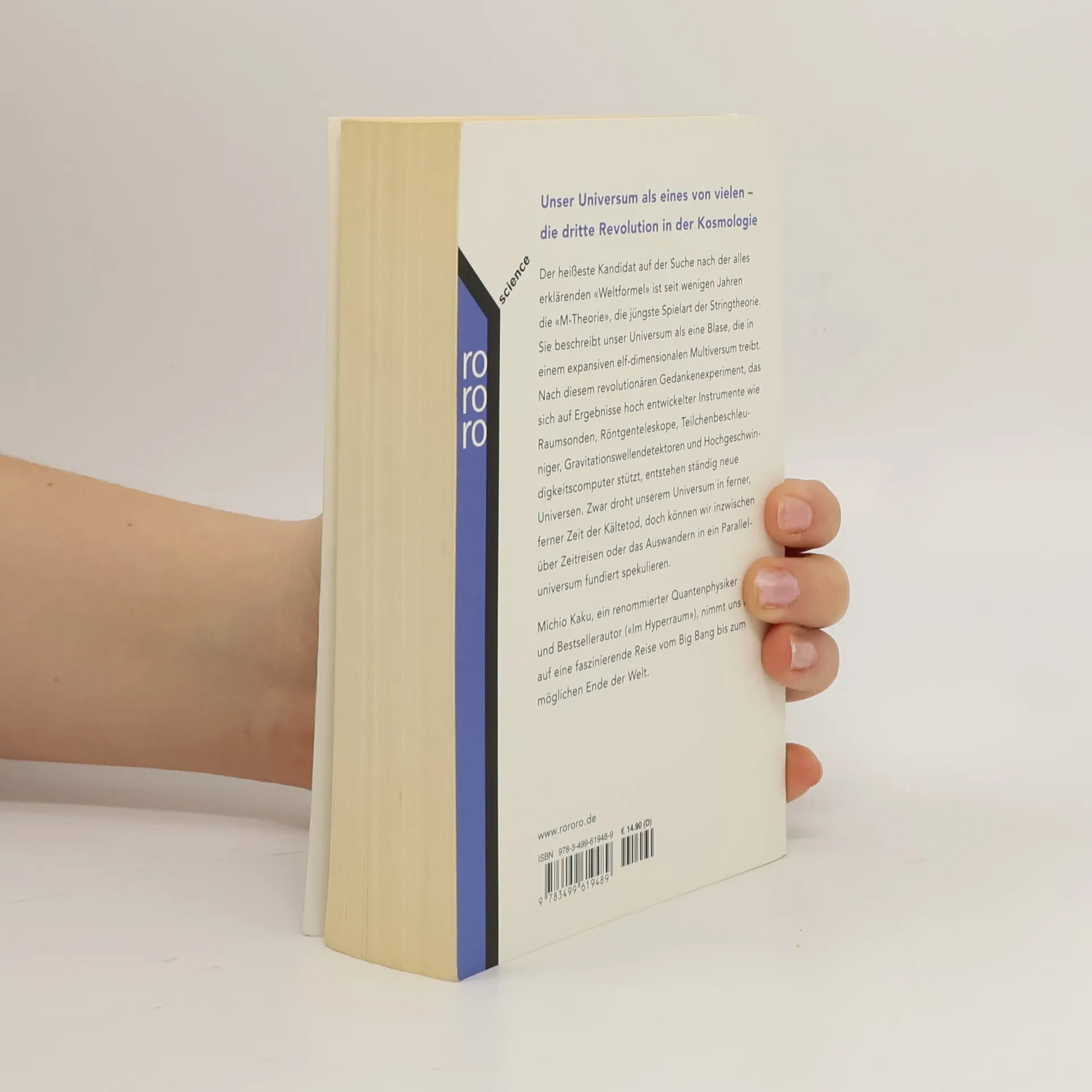 Der heißeste Kandidat auf der Suche nach der alles erklärenden «Weltformel» der Physik ist seit einigen Jahren die «M-Theorie», eine Weiterentwicklung der Stringtheorien. Sie beschreibt unser Universum als eine Blase, die in einem sich ausbreitenden elfdimensionalen Multiversum treibt. Was bedeutet das für unser Verständnis und unser Bild von der Welt? Michio Kaku, renommierter Quantenphysiker und Bestsellerautor («Im Hyperraum», «Die Physik des Unmöglichen»), nimmt uns mit auf eine faszinierende Reise vom Urknall bis zum möglichen Ende der Welt. «Kaku versteht es meisterhaft, die Kompliziertheiten der theoretischen Physik in Alltagssprache zu übersetzen.» Deutschlandradio Kultur