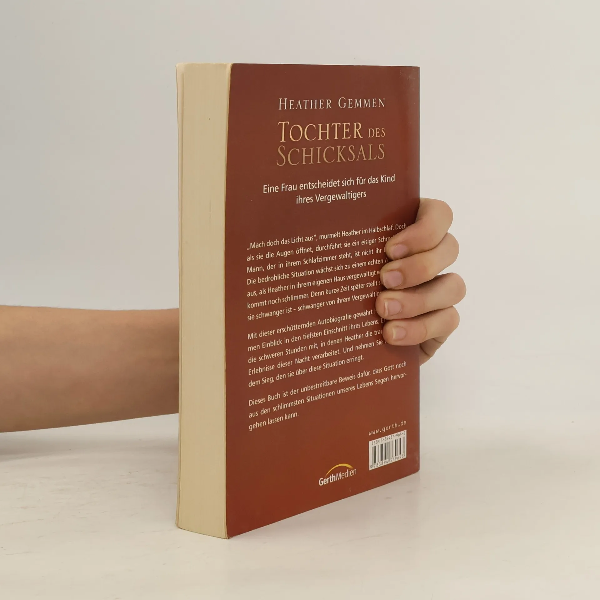 „Mach doch das Licht aus“, murmelt Heather im Halbschlaf. Doch als sie die Augen öffnet, durchfährt sie ein eisiger Schreck. Der Mann, der in ihrem Schlafzimmer steht, ist nicht ihr Ehemann. Die bedrohliche Situation wächst sich zu einem echten Alptraum aus, als Heather in ihrem eigenen Haus vergewaltigt wird. Aber es kommt noch schlimmer. Denn kurze Zeit später stellt sie fest, dass sie schwanger ist – schwanger von ihrem Vergewaltiger. Mit dieser erschütternden Autobiografie gewährt Heather Gemmen Einblick in den tiefsten Einschnitt ihres Lebens. Erleben Sie die schweren Stunden mit, in denen Heather die traumatischen Erlebnisse dieser Nacht verarbeitet. Und nehmen Sie Anteil an dem Sieg, den sie über diese Situation erringt. Dieses Buch ist der unbestreitbare Beweis dafür, dass Gott noch aus den schlimmsten Situationen unseres Lebens Segen hervorgehen lassen kann.