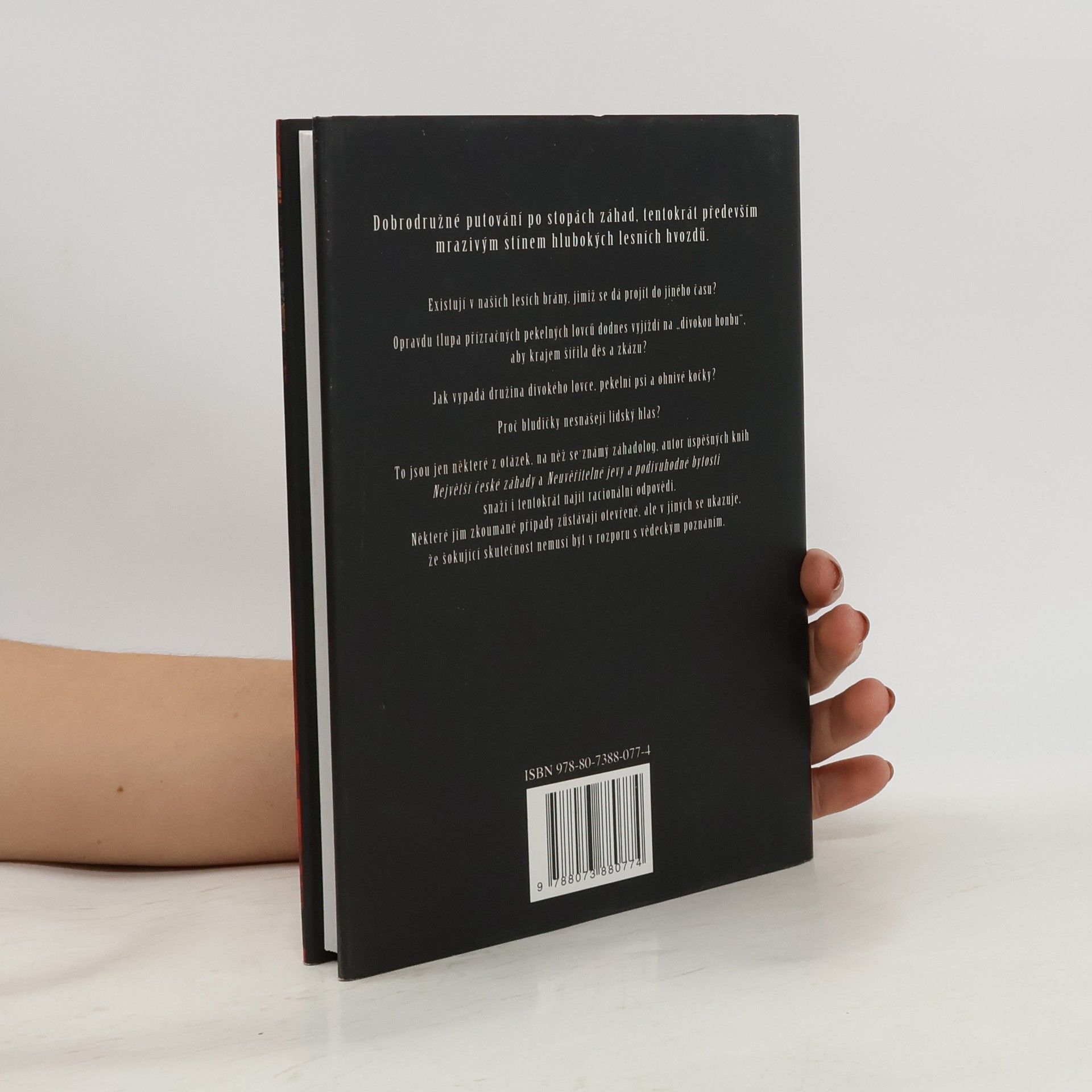 Další kniha známého záhadologa, která se tentokrát snaží objasnit nevysvětlitelné záhady a tajuplné jevy spojené s minulostí i současností. Již třetí autorova kniha z edice České záhady, která nás tentokrát zavede do tajemných českých lesů. Existují v nich bludičky nebo brány, kterými se dá projít do jiného času? Můžete se i dnes setkat s ježibabou, divým mužem nebo "divokou honbou"? Lze překročit bludný kořen a dostat se tak do jiné dimenze? Autor uvádí i případy ze současnosti. Některé je možné vědecky vysvětlit, ale některé zůstávají nadále záhadou.