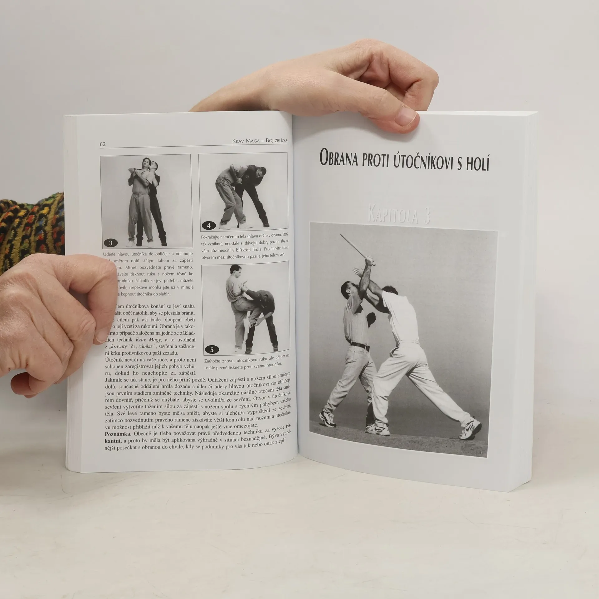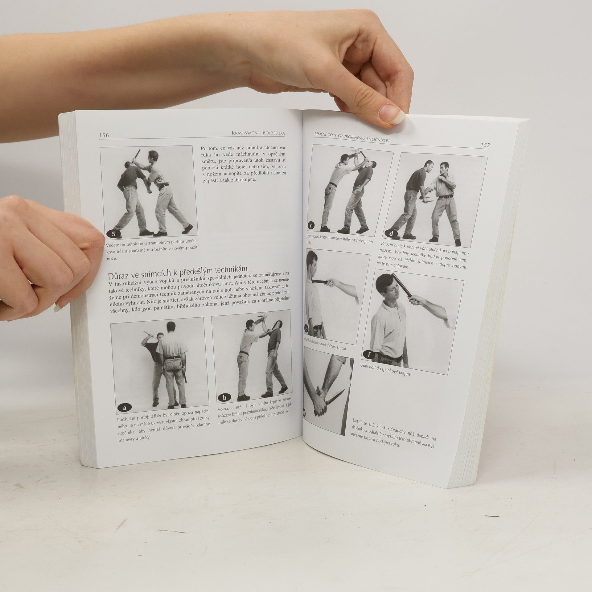 Krav Maga - souhrn bojových technik pro boj zblízka a osobní sebeobranu, původne vyvinutý pro potřeby IDF, Izraelských obranných sil, a pro další národní bezpečnostní služby a složky. Přispůsobený civilním potřebám tak, aby uvedené metody dokázali úspěšně uplatnit normání občané, mladí i staří, muži i ženy, jako takoví nedisponující obzvláštní fyzickou silou, učí, jak se vyspořádat s útočníkem ozbrojeným nožem, sekyrou, hrdlem láhve, jinými bodnými, řeznými a sečnými nástroji a zbraněmi, tupým nástrojem - palicí, holí, kamenem, střelnými zbraněmi - pistolí, samopalem, výbušninami, ...