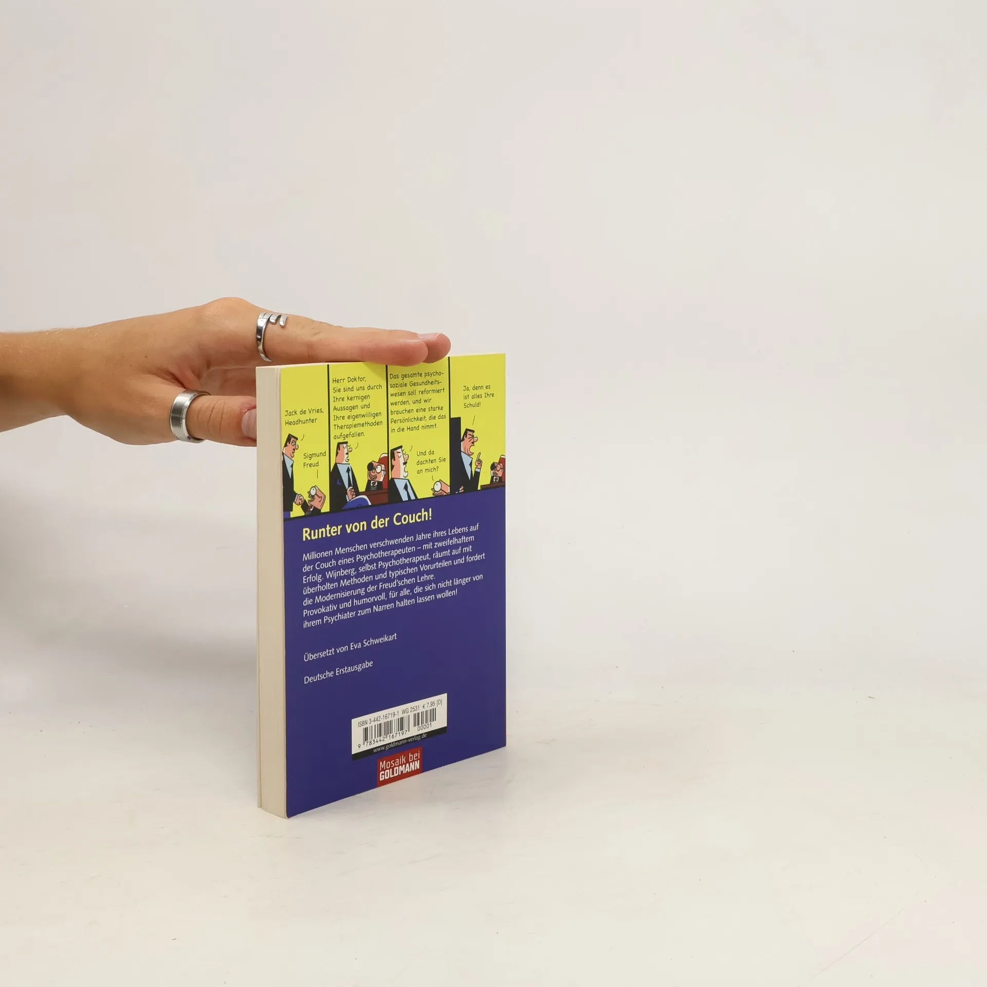 Millionen Menschen verschwenden Jahre ihres Lebens auf der Couch eines Psychotherapeuten - mit zweifelhaftem Erfolg. Wijnberg, selbst Psychotherapeut, fäumt auf mit überholten Methoden und typischen Vorurteilen und fordert die Modernisierung der Freud'schen Lehre. Provokativ und humorvoll, für alle die sich nicht länger von ihrem Psychiater zum Narren halten lassen wollen!