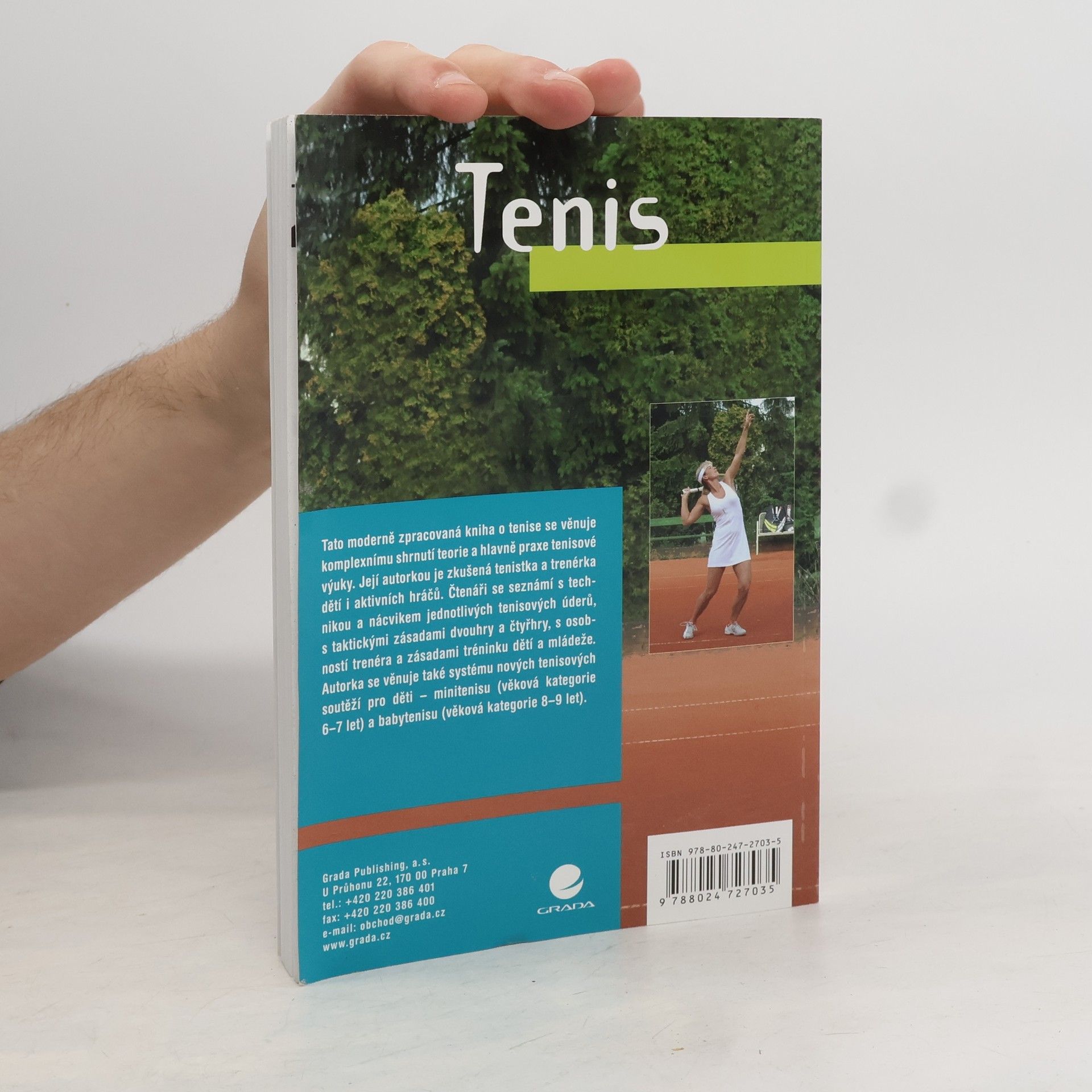 Tato moderně zpracovaná kniha o tenise se věnuje komplexnímu shrnutí teorie a hlavně praxe tenisové výuky. Její autorkou je zkušená tenistka a trenérka dětí i aktivních hráčů. Čtenáři se seznámí s technikou a nácvikem jednotlivých tenisových úderů, s taktickými zásadami dvouhry a čtyřhry, s osobností trenéra a zásadami tréninku dětí a mládeže. Autorka se věnuje také systému nových tenisových soutěží pro děti - minitenisu (věková kategorie 6-7 let) a babytenisu (věková kategorie 8-9 let).