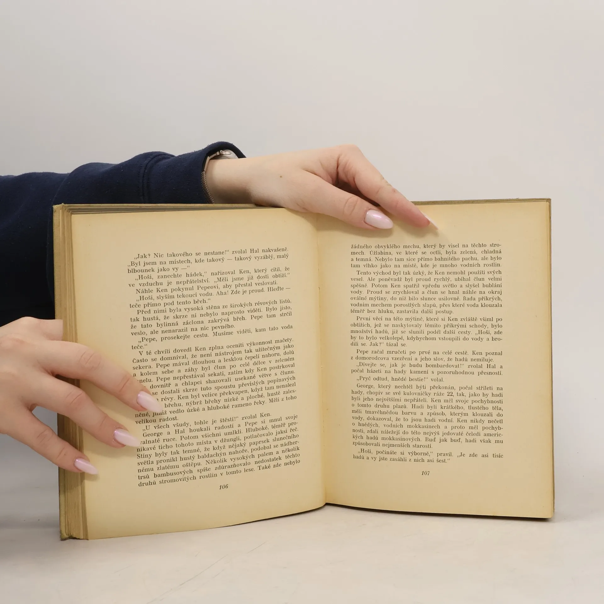 Ken Ward a jeho přátelé s domorodým průvodcem Pepem sjíždějí řeku Santa rosa džunglí.
