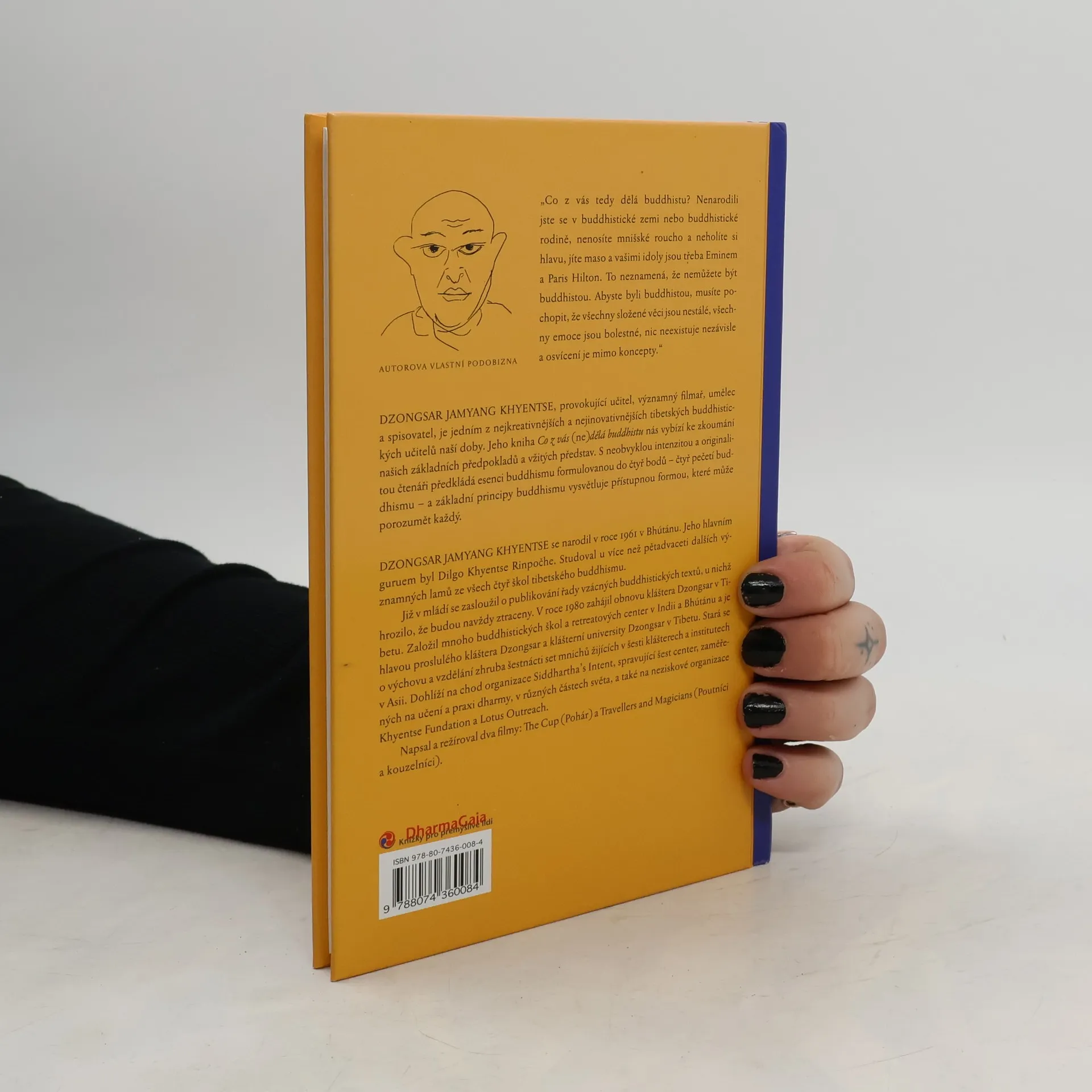 Dzongsar Jamyang Khyentse, provokující učitel, významný filmař, umělec a spisovatel, je jedním z nejkreativnějších a nejinovativnějších tibetských buddhistických učitelů naší doby. Jeho kniha Co z vás (ne)dělá buddhistu nás vybízí ke zkoumání našich základních předpokladů a vžitých představ. S neobvyklou intenzitou a originalitou čtenáři předkládá esenci buddhismu formulovanou do čtyř bodů – čtyř pečetí buddhismu – a základní principy buddhismu vysvětluje přístupnou formou, které může porozumět každý.