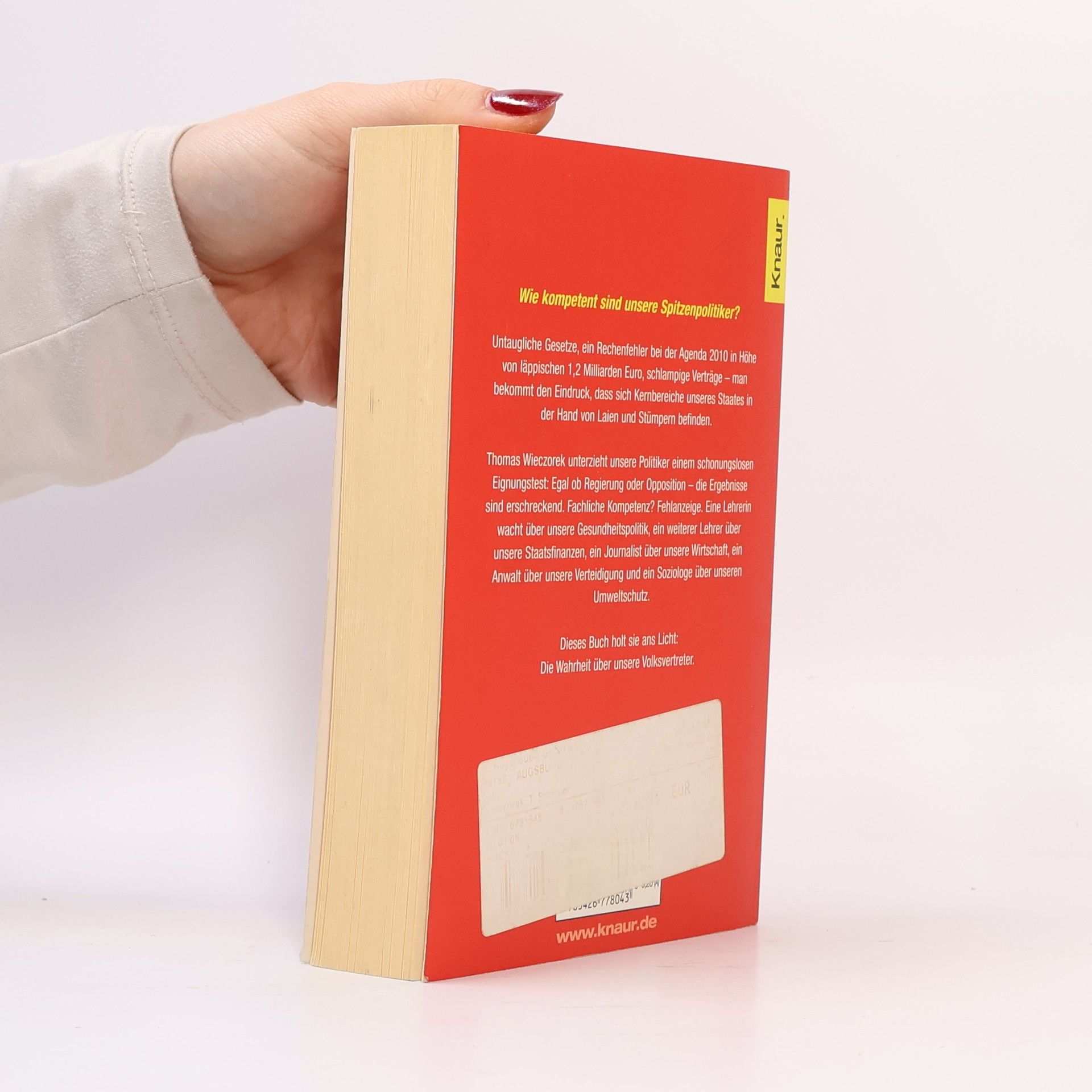Bittere Wahrheiten über den Zustand der Republik Untaugliche Gesetze, ein Rechenfehler bei der Agenda 2010 in Höhe von läppischen 1,2 Milliarden Euro, schlampige Verträge - wie kompetent sind unsere Spitzenpolitiker eigentich? Befinden sich Kernbereiche unseres Staates in der Hand von Laien und Stümpern? Thomas Wieczorek unterzieht die Politiker einem Eignungstest. Von Edelgard Bulmahn bis Jürgen Trittin, von Manfred Stolpe bis Brigitte Zypries, von Angela Merkel bis Edmund Stoiber - die Ergebnisse sind erschreckend: Fähige und uneigennützige Politiker werden aussortiert, übrig bleiben die Pseudo-Experten, die Versorgungsfälle und die Um-jeden-Preis-Karrieristen.