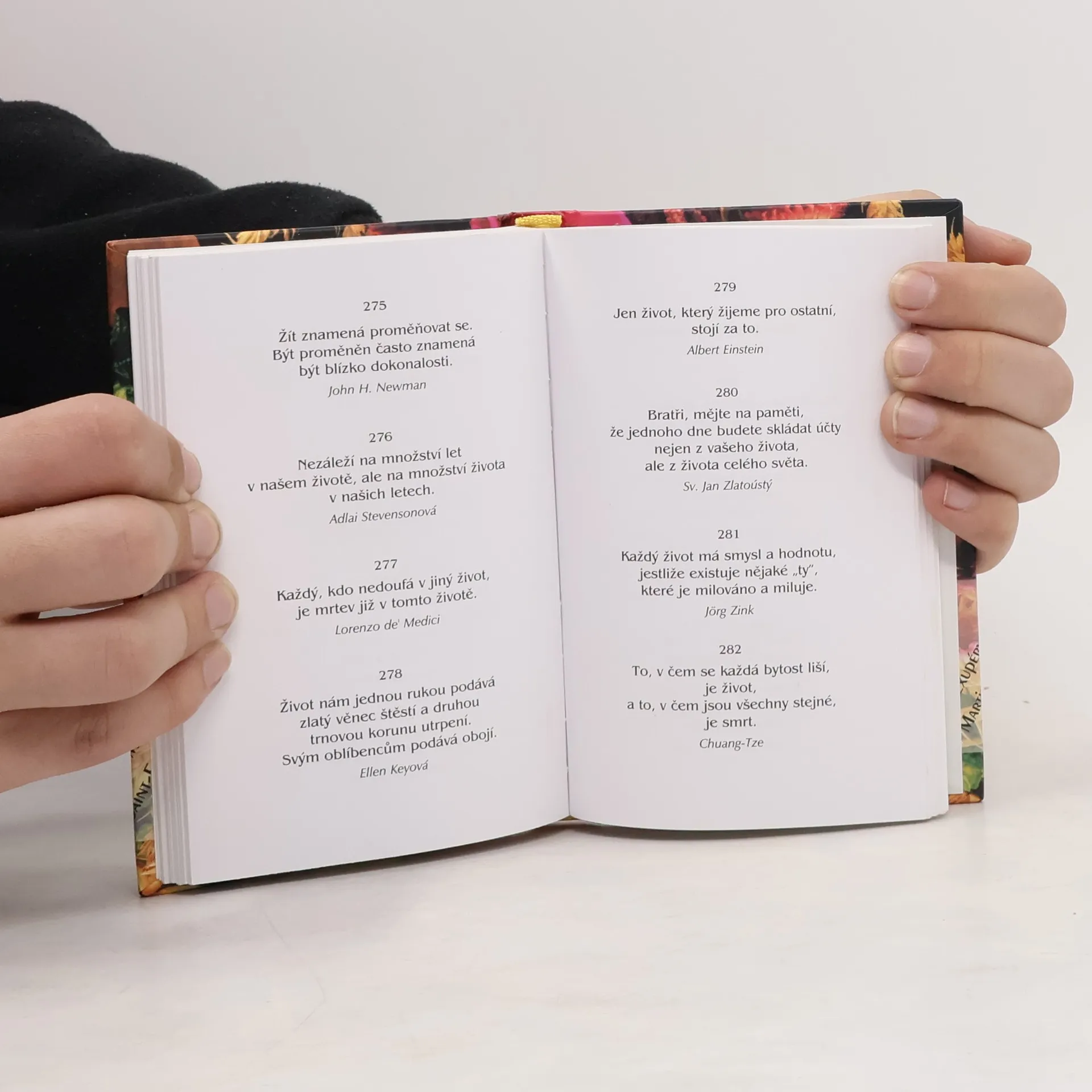 Autoři (např. Gándhí, Schweitzer, Saint-Exupéry, Vergilius, Rolland, Goethe aj.) přistupují k tématu života rozdílně, někteří ve vší vážnosti a s hlubokou úctou až obdivem, či s moudrým nadhledem, jiní své výroky koření humorem a satirou… Výběr citátů postupně vede čtenáře k poznání té nesmírné hodnoty, kterou život bezesporu je. V neobvyklé šíři a plnosti se při četbě dotýkáme samé podstaty člověka a lidství.