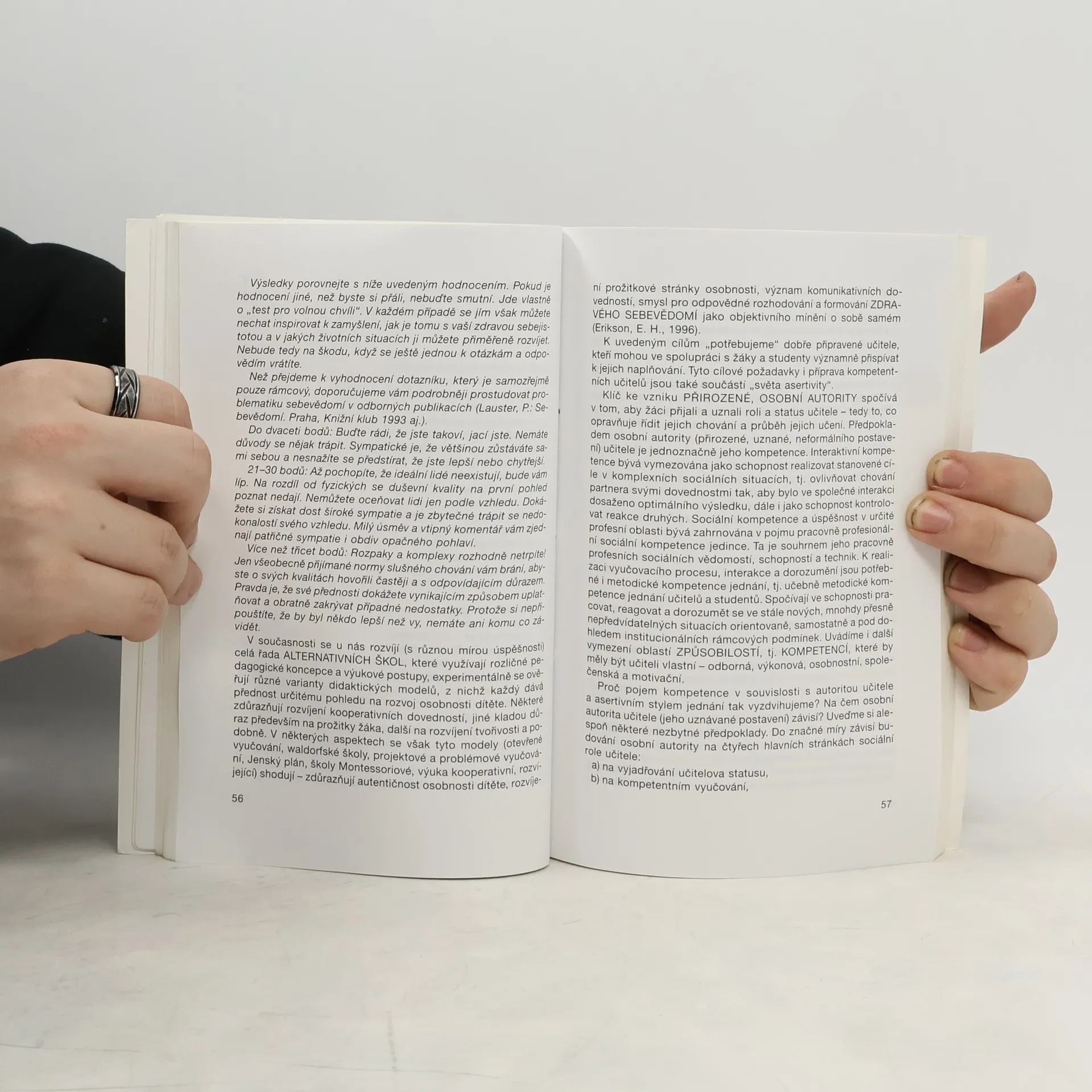 V poměrně krátké době vychází kniha již ve třetím vydání. Autorka se snaží o vymezení pojmu asertivita a uvádí další členění (asertivita empatická, stupňovaná atd.). Jasně vymezuje rozdíl mezi asertivitou a agresivitou, případně pasivitou. Zajímavá je aplikace asertivity v pedagogických podmínkách ve škole, případně v rodině. Správný postup je dokumentován na konkrétních situacích (učitel a žák). Nastíněny jsou také základní asertivní techniky (gramofonová deska, otevřené dveře atd.). Knihu uzavírá čtrnáct příloh (mapa asertivity, dotazníky, hry ve skupině, nácviky,testy). Rozsáhlý je seznam doporučené literatury.