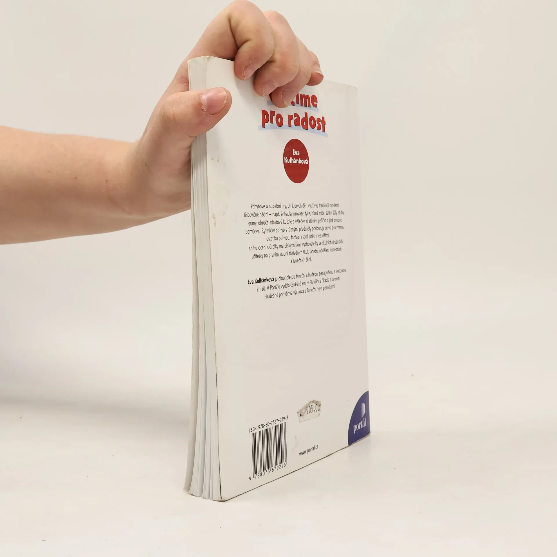 Pohybové a hudební hry, při kterých děti využívají tradiční i moderní tělocvičné náčiní, např. švihadla, provazy, tyče, různé druhy míčů, šátky a šály, stuhy, gumy, obruče, plastové kužele a válečky, drátěnky, peříčka a jiné drobné pomůcky. Rytmický pohyb s různými předměty podporuje smysl pro rytmus, estetiku pohybu, fantazii i spolupráci mezi dětmi. Knihu ocení učitelky mateřských škol, vychovatelky ve školních družinách, vyučující na prvním stupni ZŠ, taneční oddělení hudebních a tanečních škol.Eva Kulhánková je dlouholetou taneční a hudební pedagožkou a lektorkou kurzů. V Portálu vydala úspěšné knihy Písničky a říkadla s tancem, Hudebně pohybová výchova a Taneční hry s písničkami.