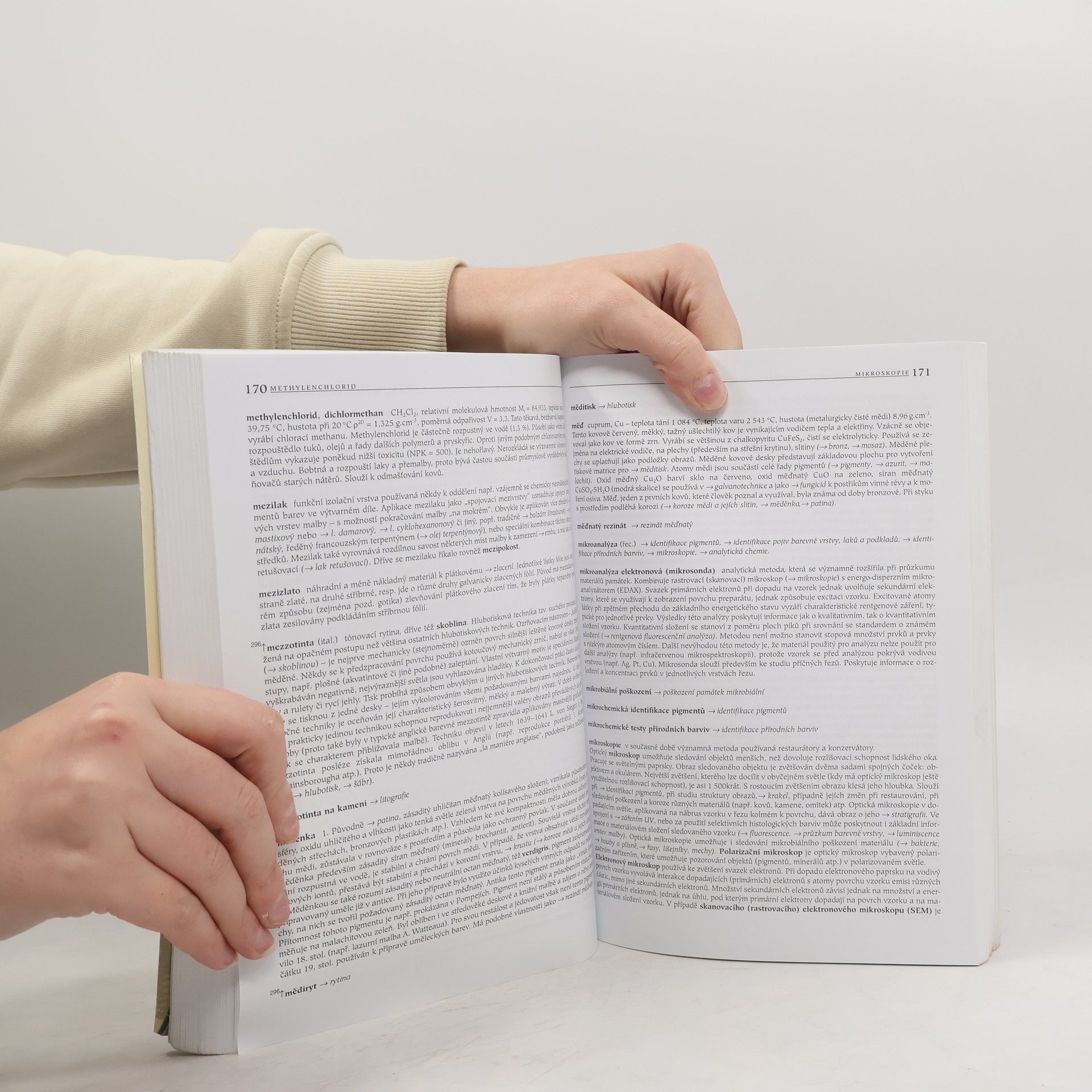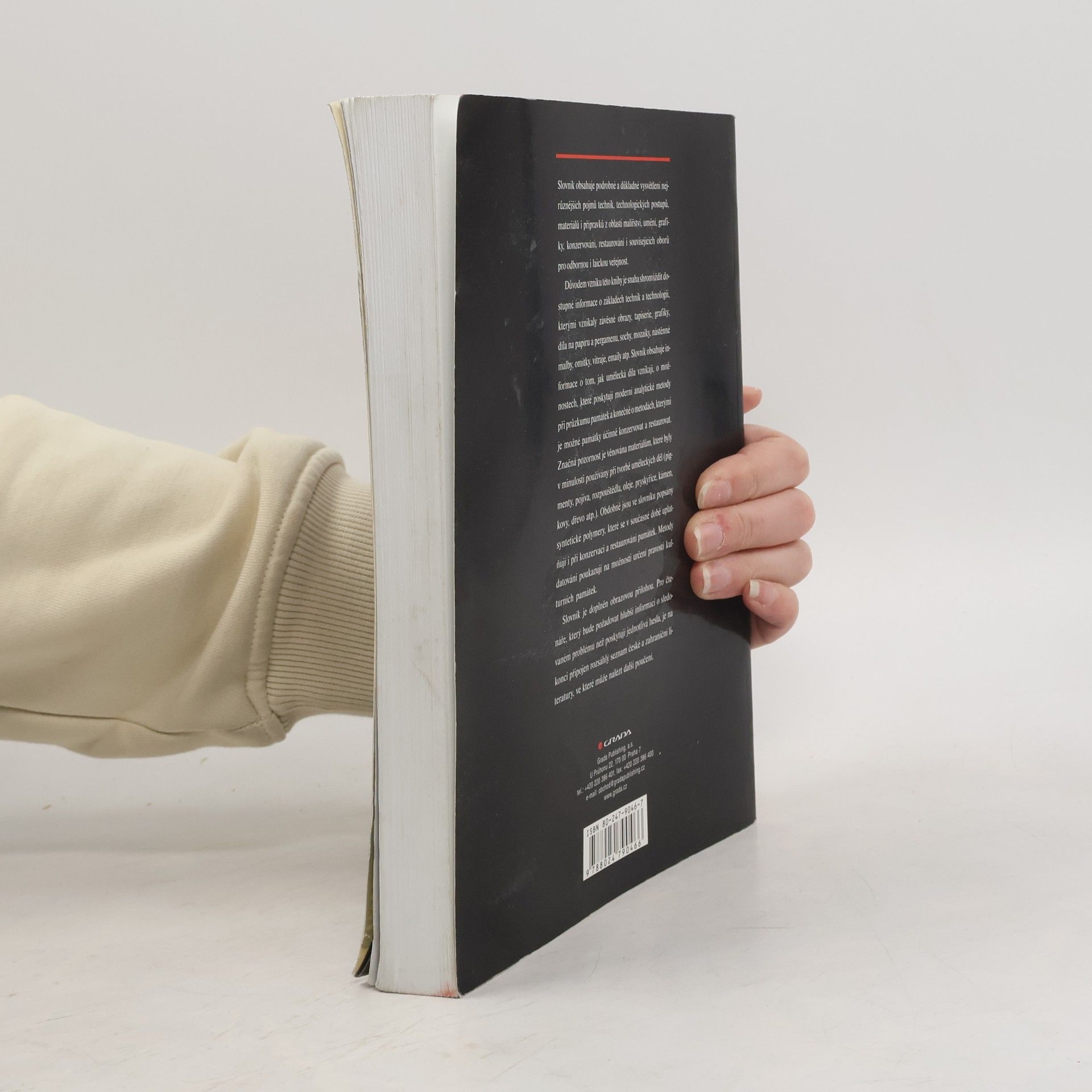 Výkladový slovník pojmů označujících techniky, technologie a materiály používané při tvorbě, konzervování a restaurování uměleckých děl. Slovník vysvětluje základy technik a technologií, kterými vznikaly závěsné obrazy, tapiserie, díla na papíru a pergamenu, grafiky, sochy, nástěnné malby, omítky, mozaiky, vitraje, emaily atd. Značná pozornost je věnována materiálům, které byly v minulosti používány při tvorbě uměleckých děl (pigmenty, pojiva, rozpouštědla, oleje, pryskyřice, kámen, kovy, dřevo atp.). Současně obsahuje také informace o průzkumu, konzervaci, restaurování i ochraně uměleckých památek a materiálech i technologiích k tomu používaných.