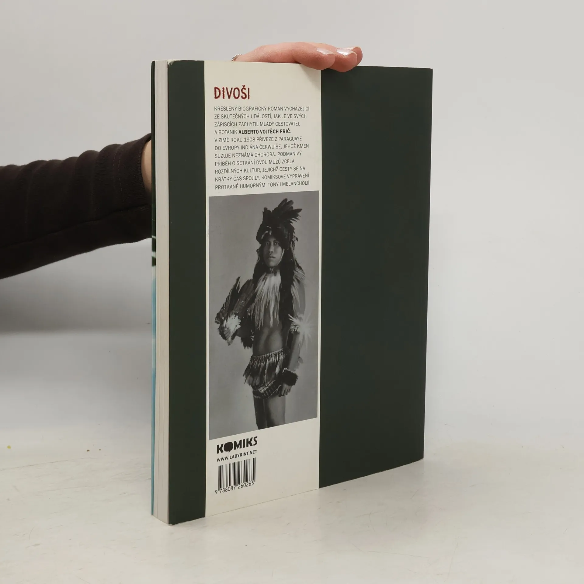 Kreslený biografický román vycházející ze skutečných událostí, jak je ve svých zápiscích zachytil mladý cestovatel a botanik Alberto Vojtěch Frič. V zimě roku 1908 přiveze z Paraguaye do Evropy indiána Čerwuiše, jehož kmen sužuje neznámá choroba. Podmanivý příběh o setkání dvou mužů ze zcela rozdílných kultur, jejichž cesty se na krátký čas spojily. Komiksové vyprávění protkané humornými i temnými tóny. Doslov Yvonna Fričová. Lucie Lomová (1964) Absolventka divadelní dramaturgie, od začátku 90. let kreslí komiksy, ilustruje časopisy a knížky, navrhuje obálky. Je autorkou oblíbeného dětského seriálu Anča a Pepík, který deset let vycházel v časopise Čtyřlístek a později vyšel také knižně. V posledních letech se věnuje hlavně komiksu pro dospělé, její album Anna chce skočit získalo v roce 2007 komiksovou cenu Muriel a Zlatou stuhu. Komiks Divoši vychází současně ve Franci.