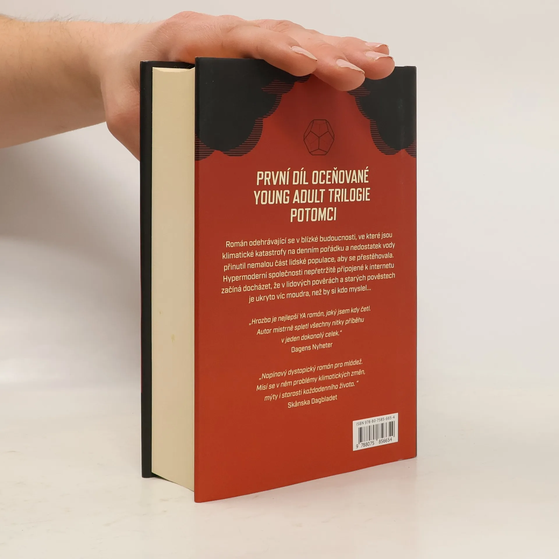 Jejich přítomnost ucítila nejdřív v zádech. Kousek se pootočila. Skupina vzpřímených postav s rozčepýřenými vlasy a těžkými batohy na zádech se brodila bystřinou a voda jim přitom obtékala kolem stehen. Nejen že je viděla, ale také slyšela ozvěnu jejich kroků, cítila pach jejich šatů, potu, dechu. Běželi přímo k ní. Jennyin otec během jednoho výletu do hor beze stopy zmizí. Až o mnoho let později se Jenny dozví, co se ten den skutečně stalo. Ukáže se, že její rodina je součástí něčeho mnohem většího – starodávného tajemství předávaného z generace na generaci. Rodiče to ale Jenny během celého jejího dospívání tajili. Kdo – nebo co – je Jenny? Román Hrozba je první knihou trilogie odehrávající se v blízké budoucnosti, ve které jsou klimatické katastrofy na denním pořádku a nedostatek vody přinutil nemalou část lidské populace přestěhovat se. Hypermoderní společnosti nepřetržitě připojené na internet začíná docházet, že v lidových pověrách a starých pověstech je ukryto víc moudra, než by kdo řekl.