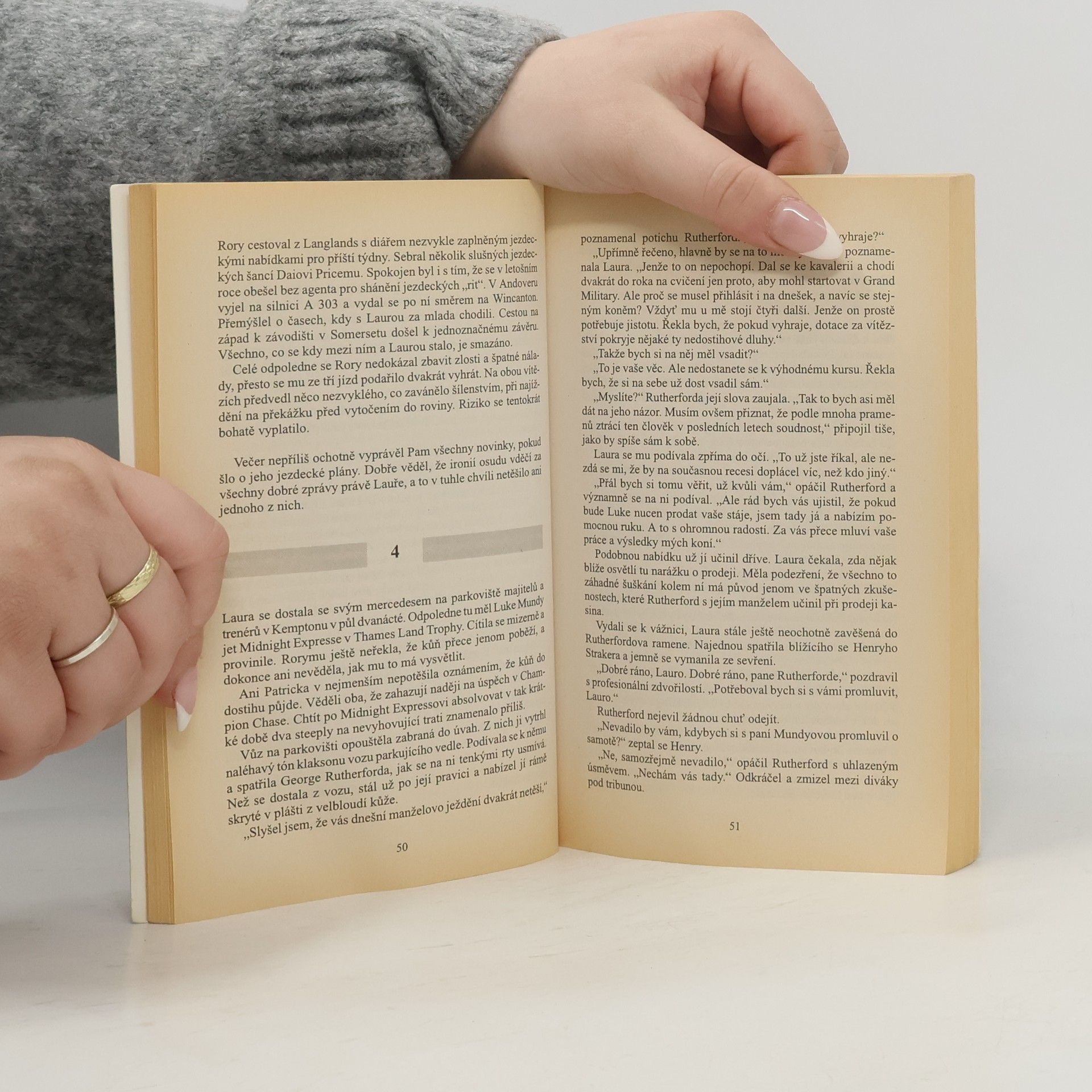 Detektivní román se odehrává na anglických dostihových závodištích při řešení obzvláště promyšlené dopingové aféry. Uznávaná trenérka se ocitá v podezření, že dopingem chtěla zabránit startu svého favorita na bezvýznamném dostihu a je tak odpovědná za smrt svého manžela, který při závodu zahynul. Její jméno pomáhá očistit žokej, který se s ní před lety kvůli kariéře rozešel ve zlém, ale nyní nevěří v její vinu.