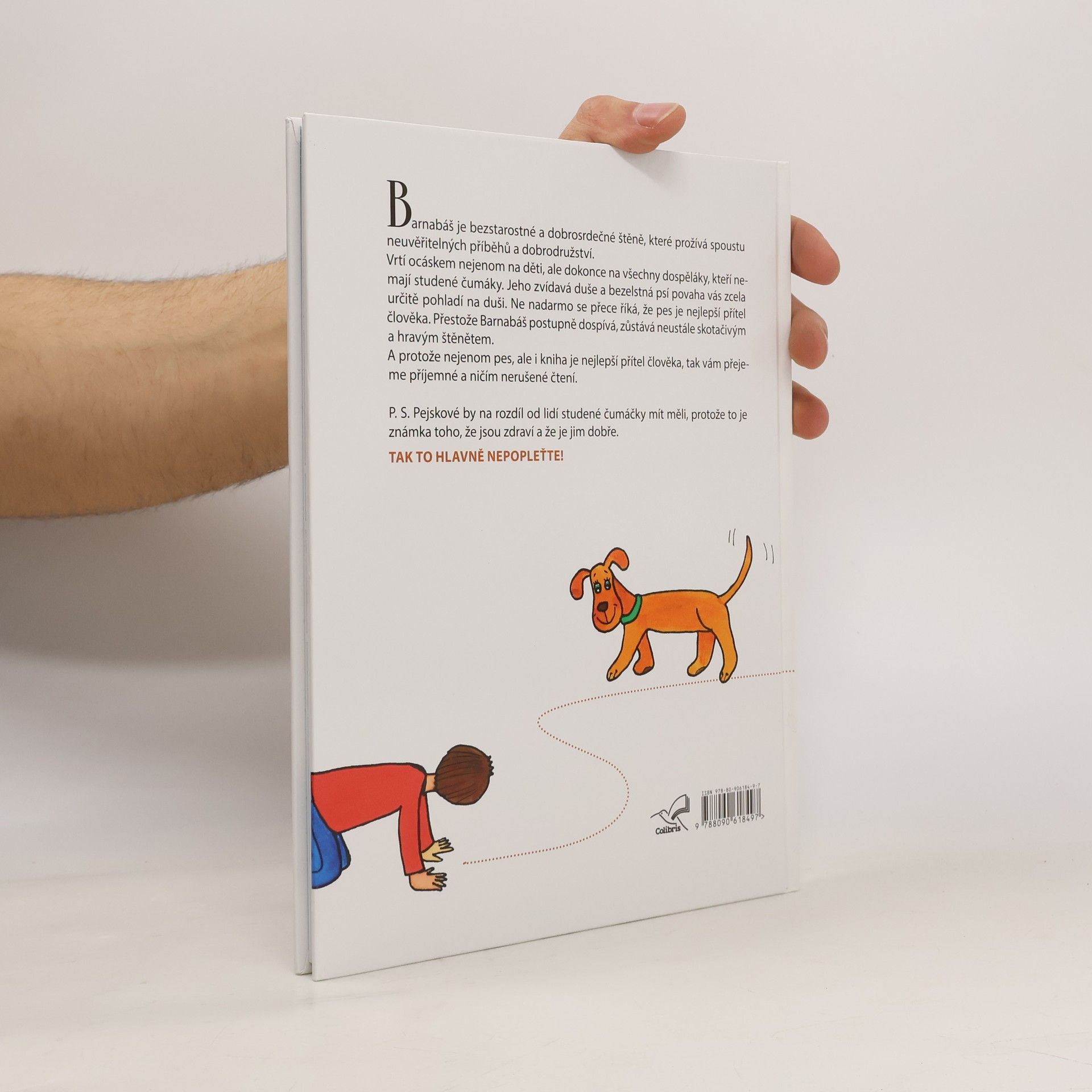 Barnabáš je bezstarostné a dobrosrdečné štěně, které prožívá spoustu neuvěřitelných příběhů a je šťastné, když se o ně může s někým podělit. Vrtí ocáskem nejenom na děti, ale dokonce na všechny dospěláky, co nemají studené čumáky. Jeho zvídavá duše a bezelstná psí povaha vás zcela určitě pohladí na duši. Ne nadarmo se přece říká, že pes je nejlepší přítel člověka. A protože nejenom pes, ale i kniha je přítel člověka, tak vám všem přejeme příjemné a ničím nerušené čtení. P. S. Pejskové by na rozdíl od lidí studené čumáky mít měli, protože to je známka toho, že jsou zdraví a že je jim dobře. Tak to hlavně nepopleťte.