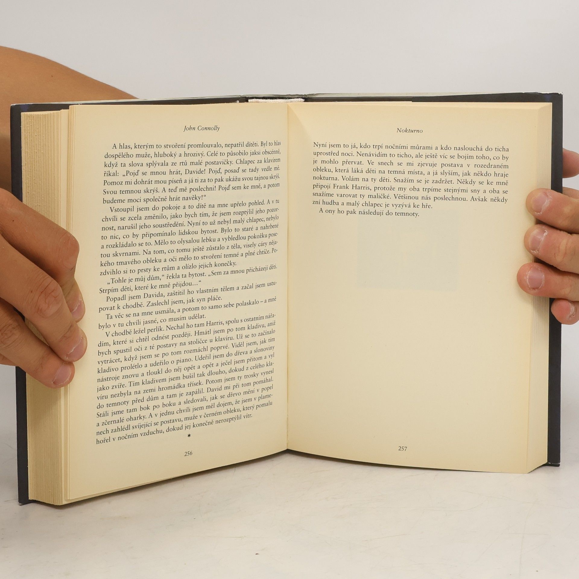 Rámec sbírky tvoří dva delší příběhy, Už přijíždí záhadný kovboj a Zrcadlení. První mapuje cestu moderní personifikace Smrti, druhá povídka je příběh strašidelného domu s překvapivým zvratem v zápletce a znamená návrat detektiva Charlieho Parkera, hrdiny Connollyho detektivek. S mrazením v zádech bude čtenář sledovat nečekané zvraty v osudech hrdinů jednotlivých povídek – od nevysvětlitelné tragédie, která postihne zbožnou farmářskou rodinu Bensonových, a nejen ji, přes záhadu čekající na válkou poznamenaného duchovního Pettingera v podzemí jeho nového působiště, po děsivý obětní rituál prestižní školy. Zkrátka nepřijdou ani ti, kdo si oblíbili Charlieho Parkera, detektiva se ztrápenou duí, neboť jemu je věnována poslední delší povídka. John Connolly, skvělý pozorovatel a mistr zkratky, dokáže vykouzlit atmosféru nabitou napětím, tajemstvím a hrůzou, která nicméně nepostrádá jeho typický černý humor. A na závěr jedno varování pro čtenáře slabších nervů – pokud se už Connollyho Nokturna odvážíte číst po půlnoci, pak mějte všude pořádně rozsvícena všechna světla.