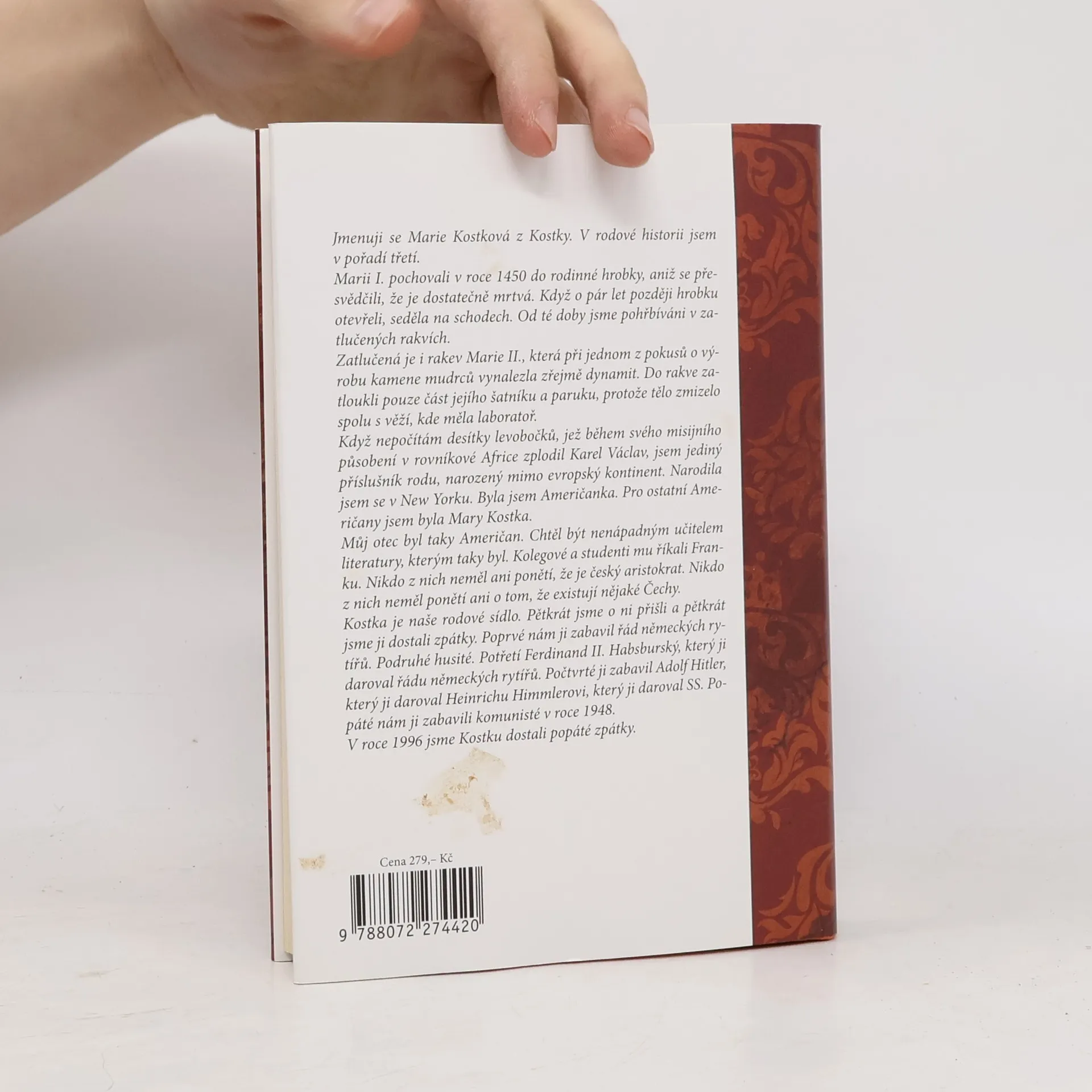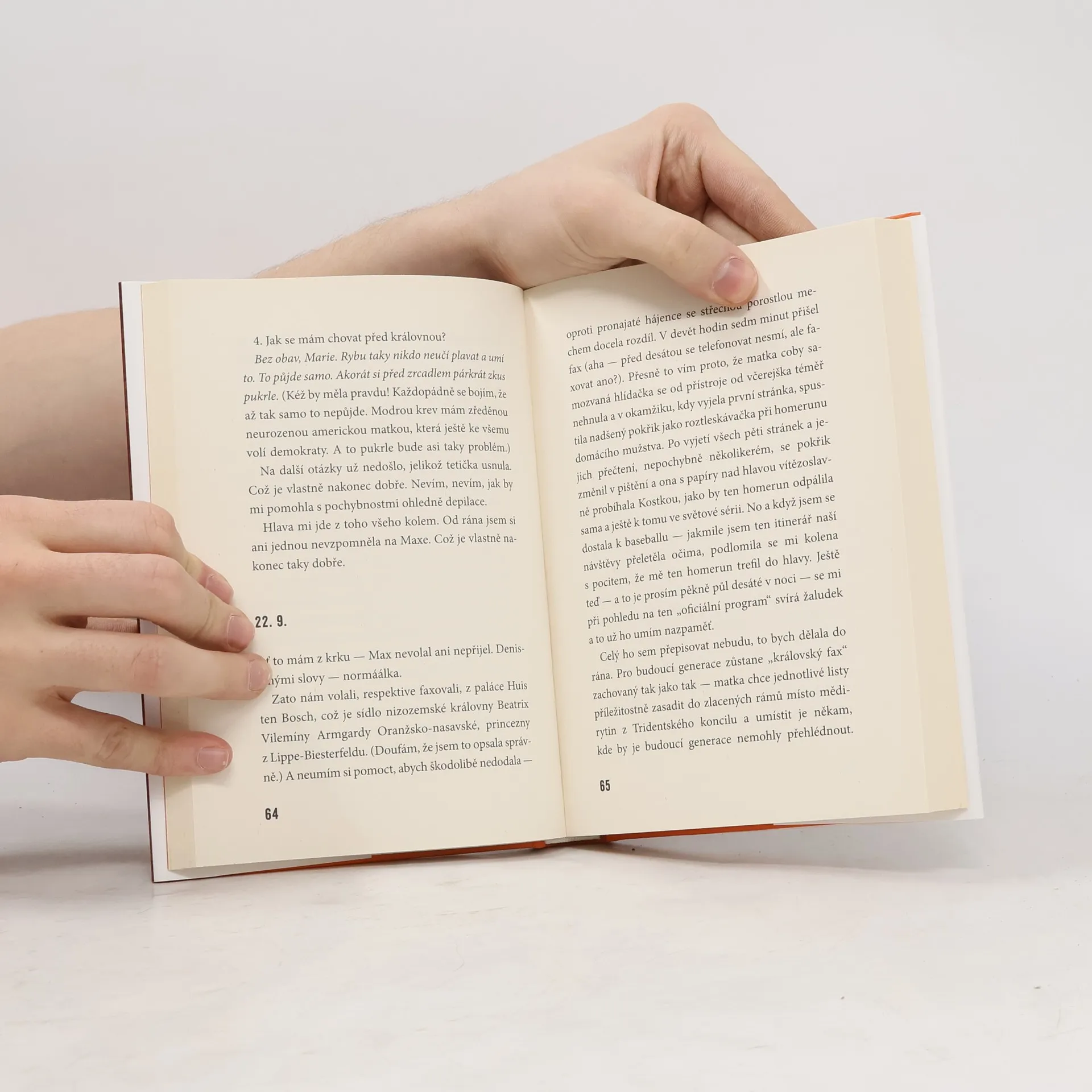 Již v pátém dílu ze série mimořádně úspěšných humoristických románů o "poslední aristokratce" mimo jiné dojde k následujícím událostem: Marie Kostková se rozzuří na Maxe Launa, zorganizuje výpravu do Nizozemského království, dostane briliantové šperky nesmírné hodnoty, objeví v sobě vášeň pro nakupování, v doprovodu své matky a paní Tiché odletí do Haagu, kde se setká s královnou Beatrix, omylem navštíví obchod s marihuanou, zažije oslnivý úspěch na recepci v královském paláci a potká sympatického mladého muže. Paní Tichá poprvé poletí letadlem a Jejímu Veličenstvu Beatrix se při audienci představí jako "nějaká Tichá." ViVien hraběnka Kostková zastaví přísun Prozacu a dočká se ocenění jako dvojnice princezny Diany. Zámecký zahradník překoná úzkost ze smrti a začne toužit po lásce. Kastelán Josef zůstane stejný.