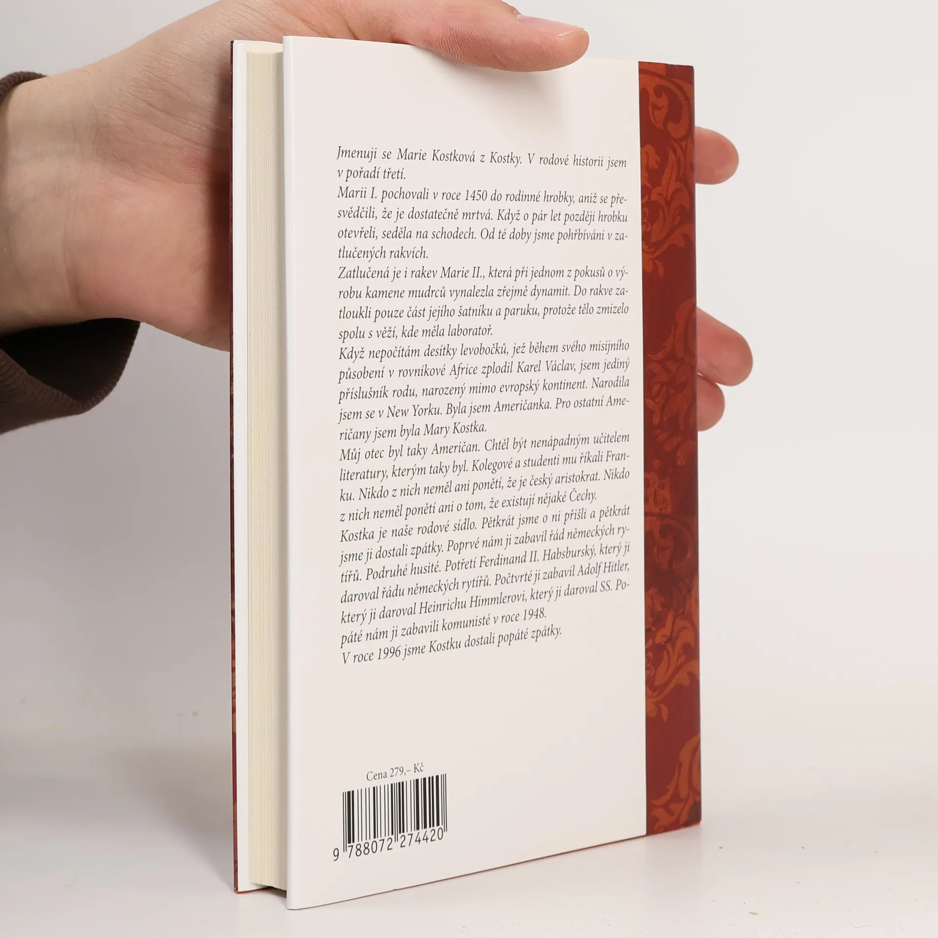 Již v pátém dílu ze série mimořádně úspěšných humoristických románů o "poslední aristokratce" mimo jiné dojde k následujícím událostem: Marie Kostková se rozzuří na Maxe Launa, zorganizuje výpravu do Nizozemského království, dostane briliantové šperky nesmírné hodnoty, objeví v sobě vášeň pro nakupování, v doprovodu své matky a paní Tiché odletí do Haagu, kde se setká s královnou Beatrix, omylem navštíví obchod s marihuanou, zažije oslnivý úspěch na recepci v královském paláci a potká sympatického mladého muže. Paní Tichá poprvé poletí letadlem a Jejímu Veličenstvu Beatrix se při audienci představí jako "nějaká Tichá." ViVien hraběnka Kostková zastaví přísun Prozacu a dočká se ocenění jako dvojnice princezny Diany. Zámecký zahradník překoná úzkost ze smrti a začne toužit po lásce. Kastelán Josef zůstane stejný.