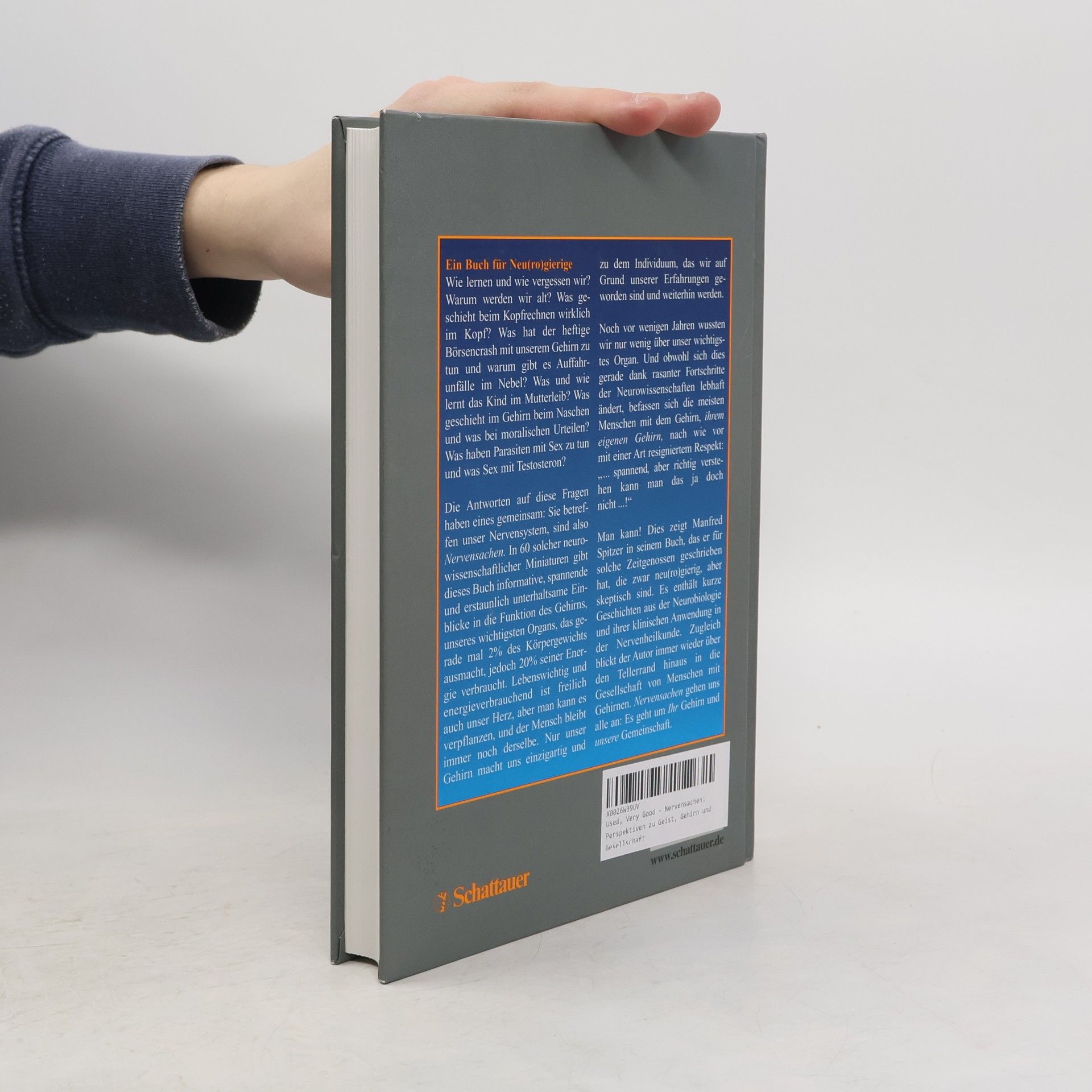 Ein Buch für Neu(ro)gierige, das spannende Einblicke in die Funktionsweise unseres Gehirns bietet. Es stellt Fragen wie: Wie lernen und vergessen wir? Was geschieht beim Kopfrechnen? Welche Zusammenhänge bestehen zwischen Börsencrashs und unserem Gehirn? In 60 neurowissenschaftlichen Miniaturen werden diese Themen behandelt, die unser Nervensystem betreffen. Das Gehirn, das nur 2% unseres Körpergewichts ausmacht, verbraucht 20% der Energie und ist entscheidend für unsere Identität und Entwicklung. Trotz der Fortschritte in der Neurowissenschaft bleibt das Verständnis für das Gehirn oft von Skepsis geprägt. Manfred Spitzer richtet sich an neu(ro)gierige Leser, die mehr über ihr eigenes Gehirn erfahren möchten. Er präsentiert kurze Geschichten aus der Neurobiologie und deren klinischen Anwendungen, während er auch gesellschaftliche Aspekte beleuchtet. Themen wie die Weisheit des Alters, Ethik im Scanner, Gewalt im Fernsehen und Lernen im Mutterleib werden behandelt. Das Buch ist für alle gedacht, die über den Tellerrand blicken wollen, insbesondere für (werdende) Mediziner, die bereit sind, sich auf diese faszinierenden Inhalte einzulassen.