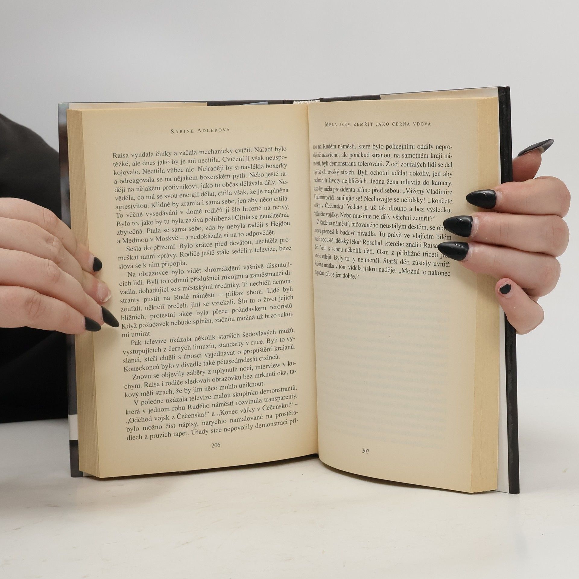 Podtitul: Příběh Raisy a jejích sester Román německé novinářky popisuje čečenské válečné poměry, osudy mnoha mladých žen, které jsou odhodlané jít bojovat za své mrtvé muže a bratry jako tzv. černé vdovy. Černé vdovy jsou však bohužel i ženy, které jejich rodina za peníze prodala teroristům. Nikomu na jejich životech nezáleží, ženy jsou izolovány v horách, takže se k nim nemůže dostat žádná nežádoucí informace. To je i případ dvou sester, které jako sebevražedné atentátnice i zemřou. V rodině zbývá ještě jedna sestra, která se však vzepře svému osudu. Autorka v závěru vysvětluje současnou čečenskou situaci, příběh, který v knize popisuje, je napsán podle skutečných událostí.