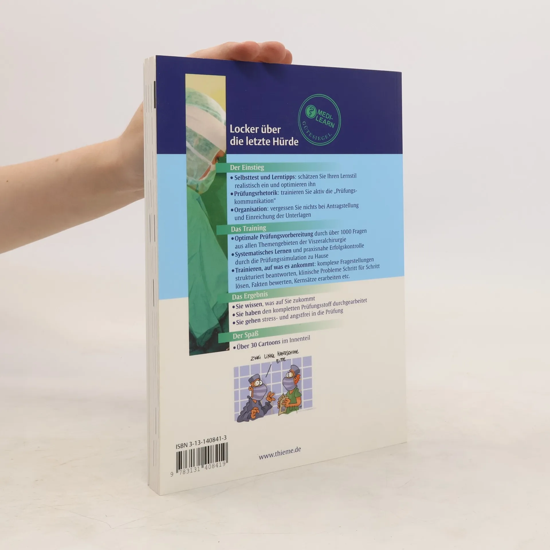 In der Prüfung wird problemorientiertes, integratives Denken erwartet. Mit „Facharzprüfung Viszeralchirurgie“ wird genau dieses trainiert. Das Vorbereitungsbuch für das viszeralchirurgische Facharztgespräch Viszeralchirurgie in Frage und Antwort - Der gesamte Prüfungsstoff - problemorientiert und vernetzt - Gezielte Wiederholung prüfungsrelevanter Fakten - Auffrischung von Facharztwissen - Fit für die Prüfung - Fakten und Inhalte realer Facharztprüfungen - Praxisnahe Testfragen simulieren die Prüfungssituation - Effizient lernen - das Wichtigste in Kürze Für Prüfer Anregungen für gute Prüfungsgespräche: zur Auswahl geeigneter Inhalte gesellen sich Schwierigkeitsgrad, Trennschärfe, Klarheit, Evidenz der gestellten Fragen Inhaltsverzeichnis Deutsch Frage- und Antwortteil Klinische Ausgangssituation (typische Befunde) mit Einstiegs- und Folgefragen Fallorientierte Fragen mit Kurzantwort, Kommentar mit Details, zusätzliche Fakten und Hintergrundwissen Mantelteil/Anhang Ratgeber: effiziente Prüfungsvorbereitung, Ablauf der mündlichen Prüfung etc. Service: Daten/Statistiken zur Facharztprüfung, Ansprechpartner bei Ärztekammern, Management bei Nichtbestehen etc. Stärkungstipps, Psychotest „Fit für die Prüfung“