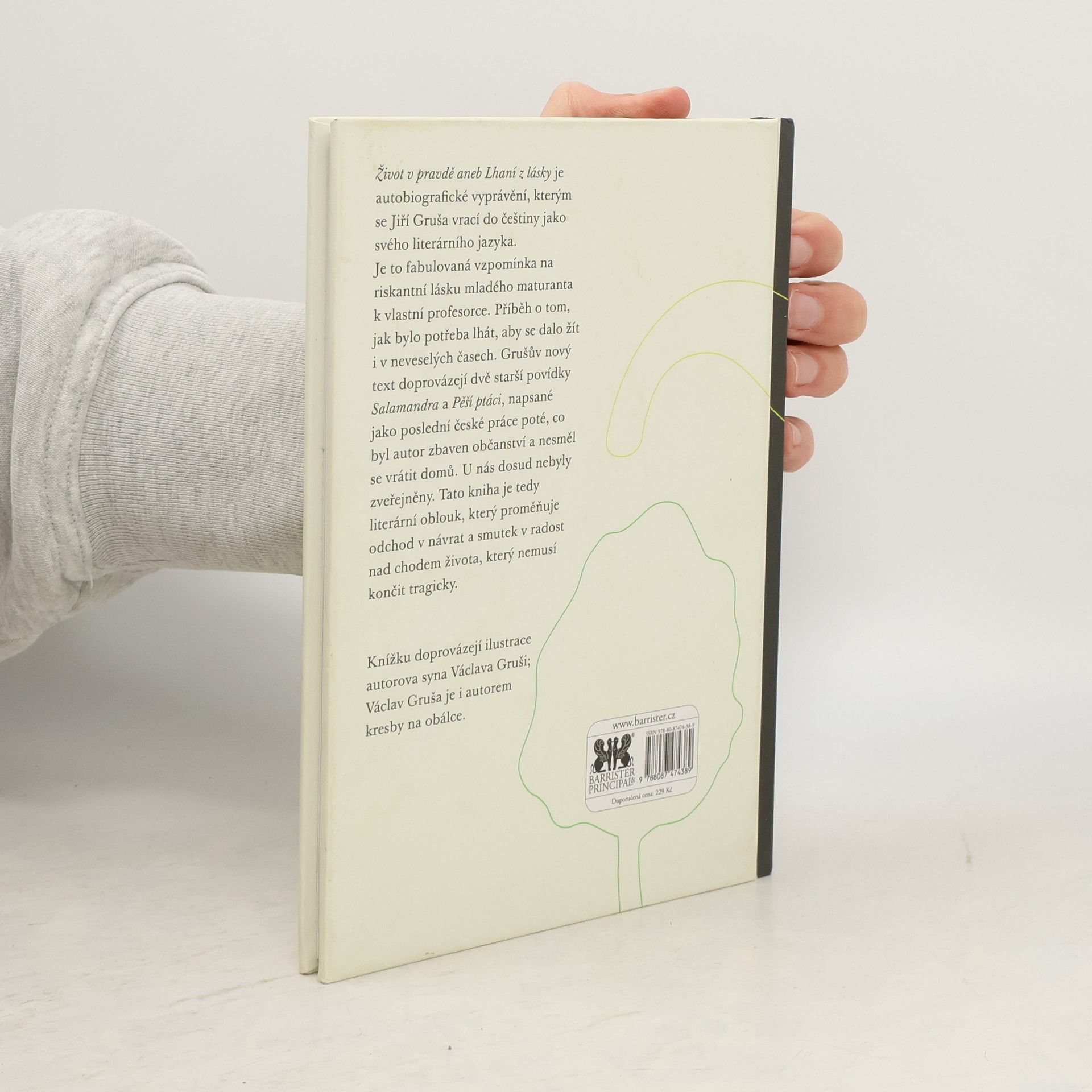 Život v pravdě aneb Lhaní z lásky je autobiografické vyprávění, kterým se Jiří Gruša vrací do češtiny jako svého literárního jazyka. Je to fabulovaná vzpomínka na riskantní lásku mladého maturanta k vlastní profesorce. Příběh o tom, jak bylo potřeba lhát, aby se dalo žít i v neveselých časech. Grušův nový text doprovázejí dvě starší povídky Salamandra a Pěší ptáci, napsané jako poslední české práce poté, co byl autor zbaven občanství a nesměl se vrátit domů. U nás dosud nebyly zveřejněny. Tato kniha je tedy literární oblouk, který proměňuje odchod v návrat a smutek v radost nad chodem života, který nemusí končit tragicky.