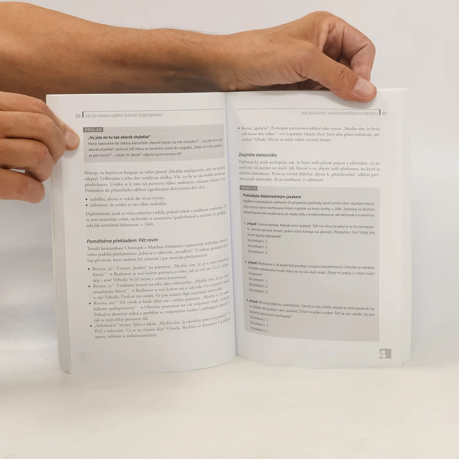 Kdo je pohotový a ovládá umění slovní sebeobrany, odchází ze slovních šarvátek a potyček jako vítěz a s jistotou zvládá i obtížnou komunikaci. Pojďte se naučit, jak se v náročných situacích blýsknout přesně zacílenou odpovědí. Dozvíte se, jak si ubránit svou suverenitu ve styku s lidmi, kteří se k vám nechovají s respektem, jak odrazit dotěrné či neférové otázky, jak zvolit správná slova či které techniky je možné natrénovat, aby vaše reakce pak byly co nejtrefnější. Na mnoha příkladech uvidíte a v cvičeních si natrénujete, jak využívat také řeč těla, jak odvrátit nepřiměřenou kritiku, jak být pohotový před publikem či co dělat, když druhý vybuchuje vztekem. Ať už v osobním životě či v práci: ten, kdo se umí suverénně vypořádat s neoprávněnými útoky, má více času a energie pro opravdu důležité věci.