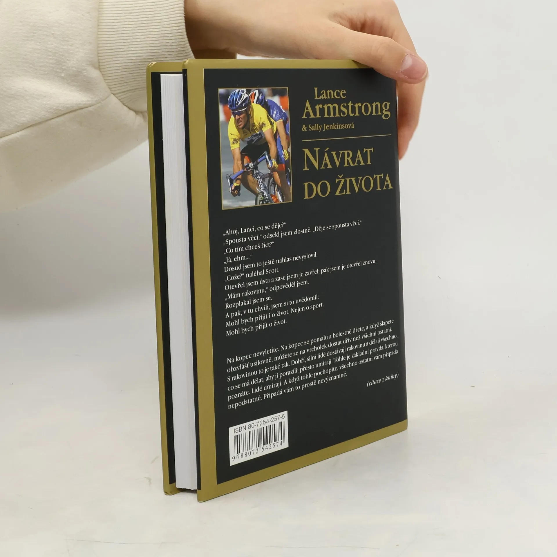 Tato kniha vypovídá o skutečném životním osudu, o skutečném utrpení, lásce, naději, vůli a touze žít, vítězit nad nemocí, soupeři i nad nedůvěrou okolí. Je to otevřená výpověď muže, který poznal, jak tenká je hranice uctíváním slavných a ponížením smrtelně nemocných, jak pofidérní jsou hodnoty jako peníze či sportovní vavříny tváří v tvář smrti.