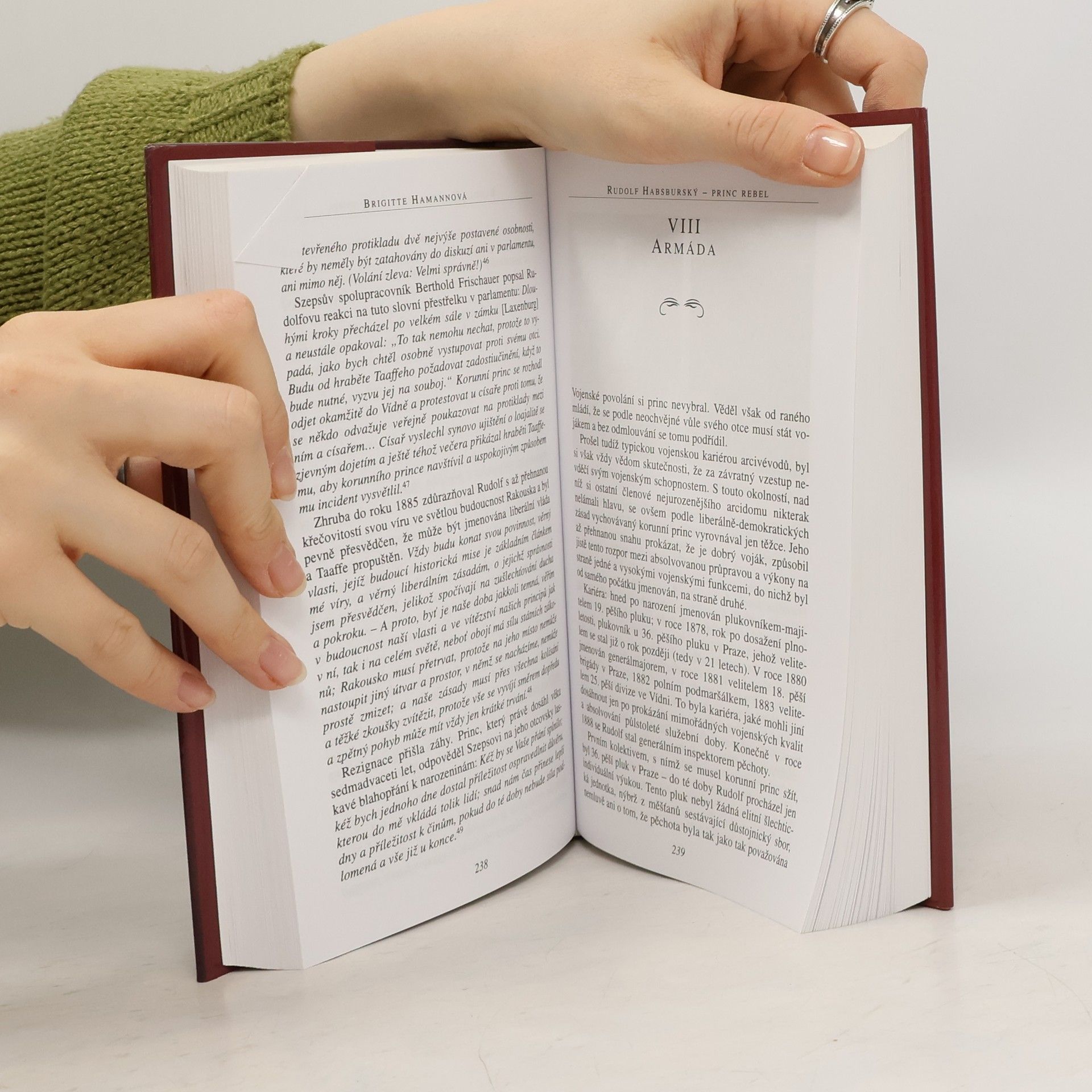 Řada publikací líčí Rudolfa Habsburského (1858–1889), syna císaře Františka Josefa I. a jeho ženy Alžběty, jako poněkud zdegenerovaného aristokrata, kterého charakterizují náruče hereček, obskurní šantány, alkohol a drogy a jehož tragický skon provázejí nejroztodivnější pověsti. Brigitte Hamannová však korunního prince vykresluje především jako člověka, který péčí učitelů, předních evropských vzdělanců a díky své touze po vzdělání a úctou k vědění získal v dospívání nejen mimořádné znalosti, ale osvojil si i životní postoje, jež se v průběhu času příliš neměnily. Vyhraněná světonázorová stanoviska, jež Rudolf rozvíjel ve studentských pracích a až do posledních dnů v množství novinových (ovšemže anonymních) článků, v jiných publikacích, osobními kontakty i různými prohlášeními, představují následníka habsburského trůnu, tradičně konzervativního a klerikálního, ve značně překvapivém světle. Zaujetí pro liberální uspořádání společnosti, svobodu, lidská práva, humanitu a pokrok a s tím související odpor k nevzdělané aristokracii, nacionálním projevům, ke klerikalismu a antisemitismu Rudolfa sblížily s představiteli měšťanské – často židovské – inteligence a neodvratně ho vzdálily od císařského dvora. Byl bez politického vlivu i oficiálních informací, a přece se houževnatě angažoval pro mnohonárodnostní rakousko-uherskou monarchii, jejíž další existenci spatřoval v odmítnutí militaristického Německa a ve spojenectví s Francií a Ruskem. Nereálnost následníkových cílů, nenaplněný soukromý život, nemoc a jistě i přemíra šampaňského s koňakem a morfium nakonec vedly k devastaci kdysi tak zářivé osobnosti. V loveckém zámečku Mayerling však nezazněl jen jeden výstřel. Rudolf vzal s sebou na smrt i sedmnáctiletou milující Mary Vetserovou...