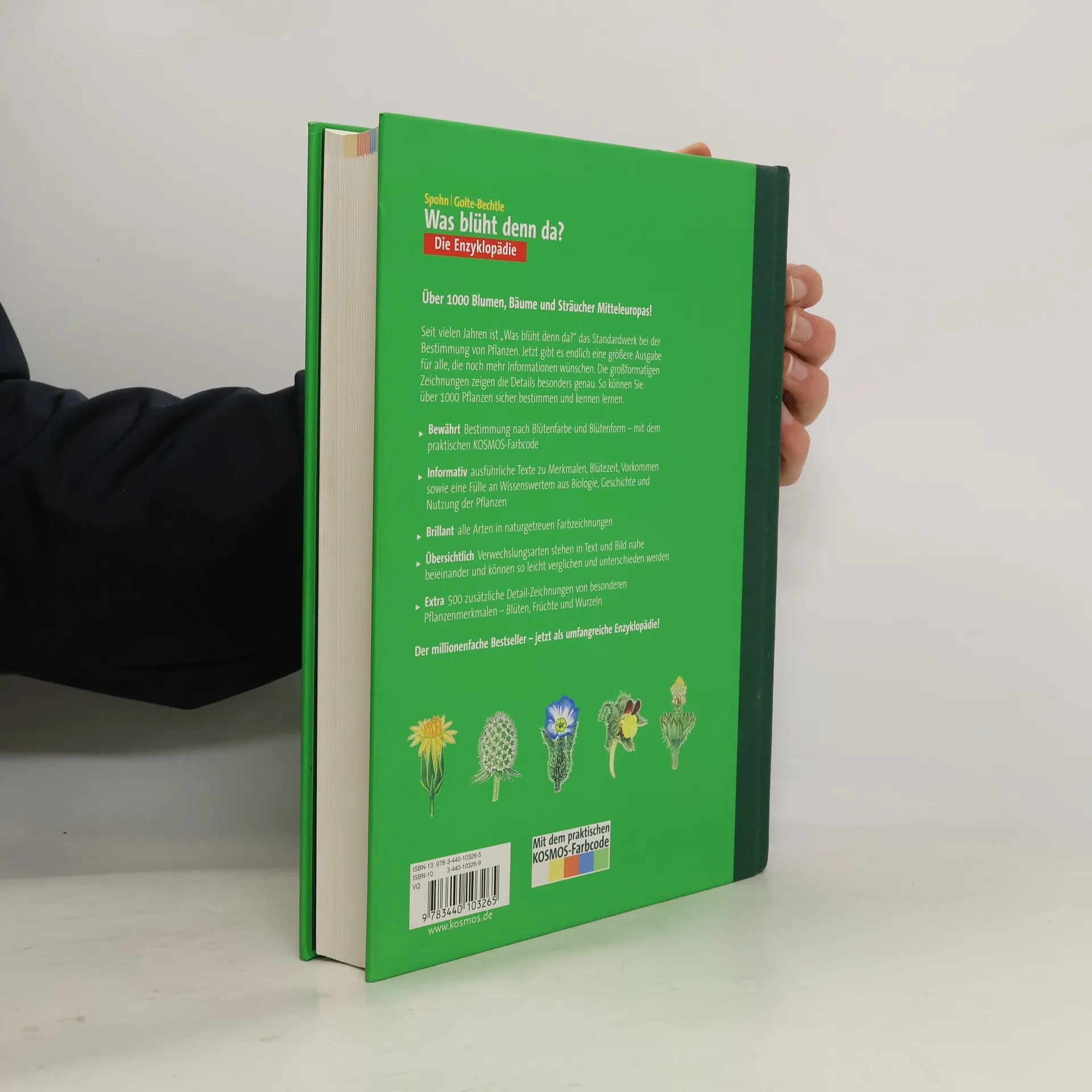 Seit vielen Jahren ist "Was blüht denn da?" das Standardwerk bei der Bestimmung von Pflanzen. Jetzt gibt es endlich eine Ausgabe mit noch größeren Zeichnungen. Über 1000 Pflanzen lassen sich somit noch leichter und sicherer bestimmen. Schnell und sicher bestimmen: mit dem bewährten Kosmos-Farbcode nach Blütenfarbe und Blütenform Übersichtlich: Verwechslungsarten stehen zusammen auf einer Tafel und können so leicht verglichen werden Informativ: naturgetreue Farbzeichnungen mit leicht verständlichen Texten zu Merkmalen, Blütezeit, Vorkommen und Wissenswertes ((- besonders viel Wissenswertes)) Extra: viele zusätzliche Detail-Zeichnungen von besondern Pflanzenmerkmalen - Blüten, Früchte, Wurzeln und vieles mehr.