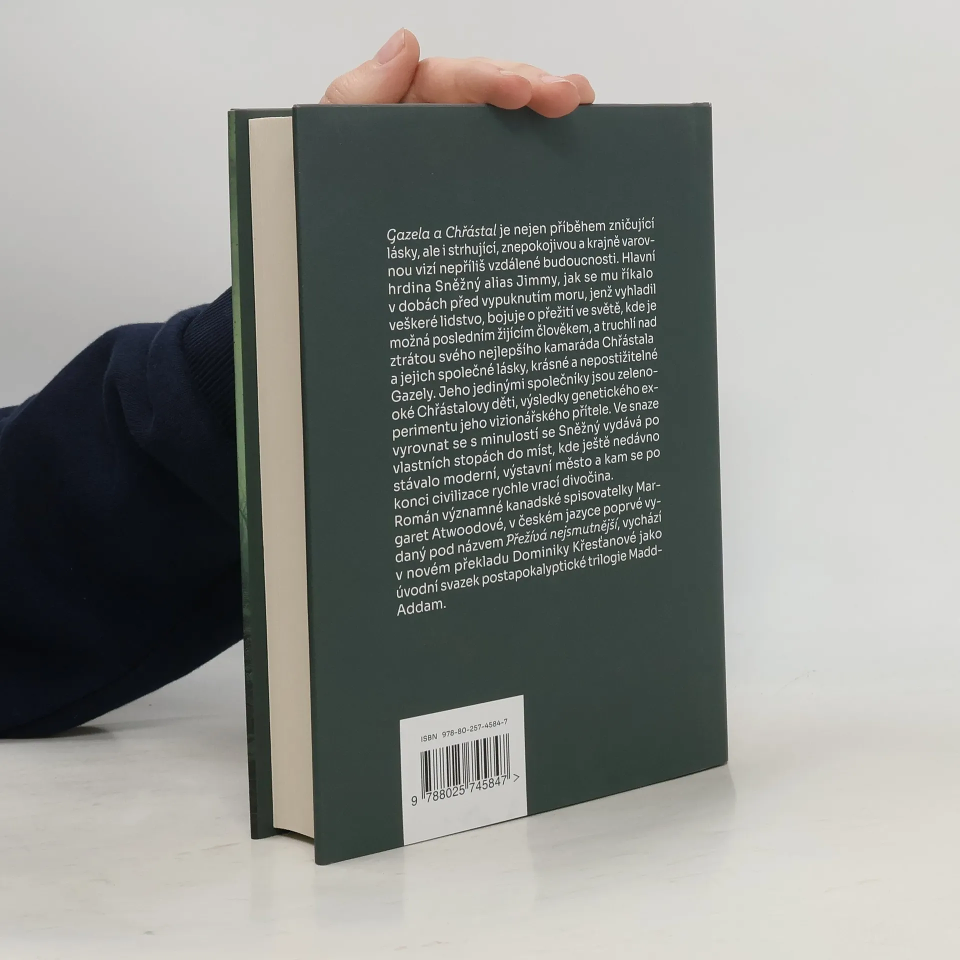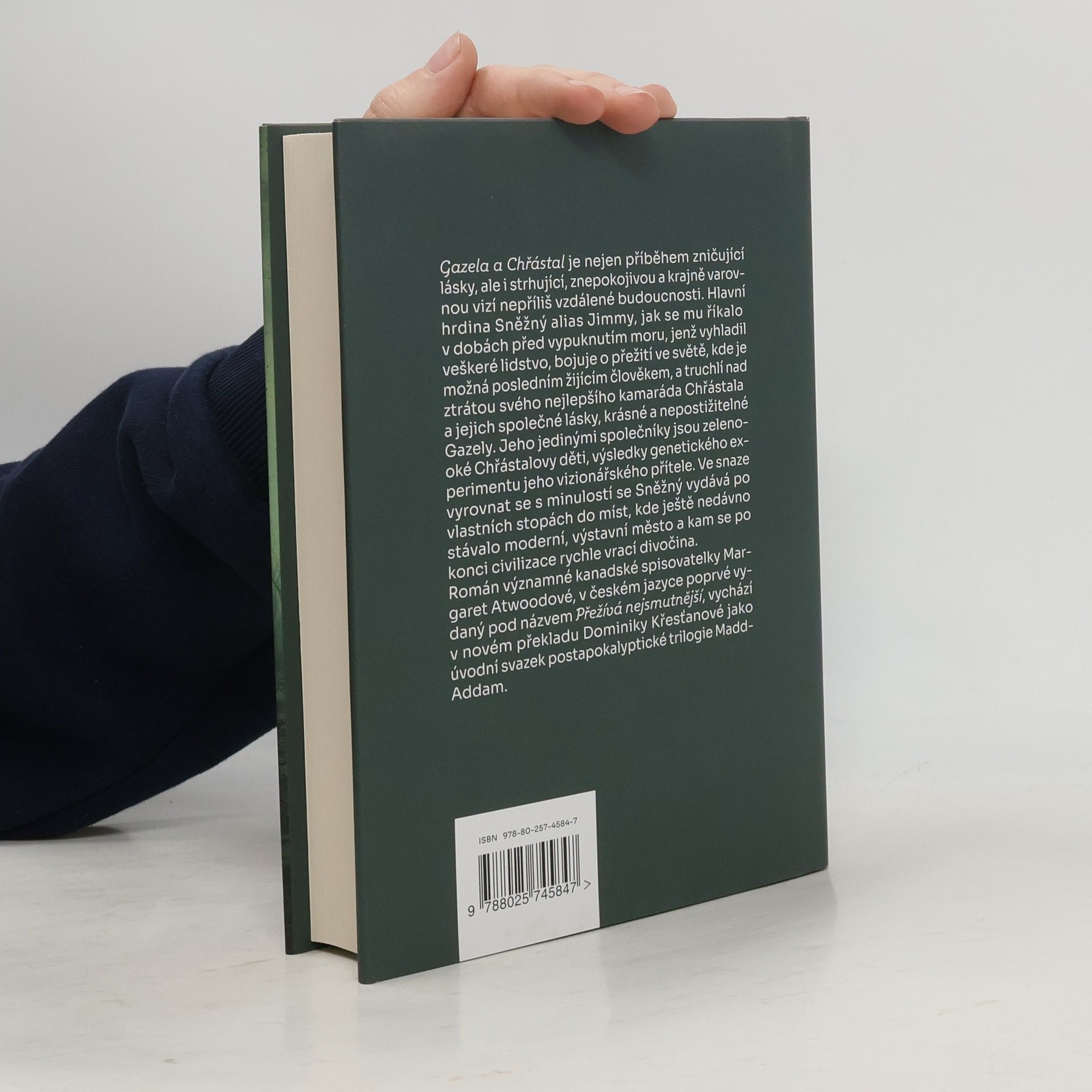 Gazela a Chřástal je nejen příběhem velké a zničující lásky, ale i strhující a varovnou vizí budoucnosti. Hlavní hrdina Sněžný alias Jimmy, jak se mu říkalo v dobách před vypuknutím moru, jenž vyhladil veškeré lidstvo, bojuje o přežití ve světě, kde je možná posledním žijícím člověkem, a truchlí nad ztrátou svého nejlepšího kamaráda Chřástala a jejich společné lásky, krásné a nepostižitelné Gazely. Jeho jedinými společníky jsou zelenooké Chřástalovy děti, výsledky genetického experimentu jeho vizionářského přítele. Ve snaze vyrovnat se s minulostí se Sněžný vydává po vlastních stopách do míst, kde ještě nedávno stávalo moderní, výstavní město a kam se po konci civilizace rychle vrací divočina. Obraz nepříliš vzdálené budoucnosti, který Margaret Atwoodová v románu vykresluje, je ve své tíživé pravděpodobnosti nejen znepokojivý, ale i varovný…