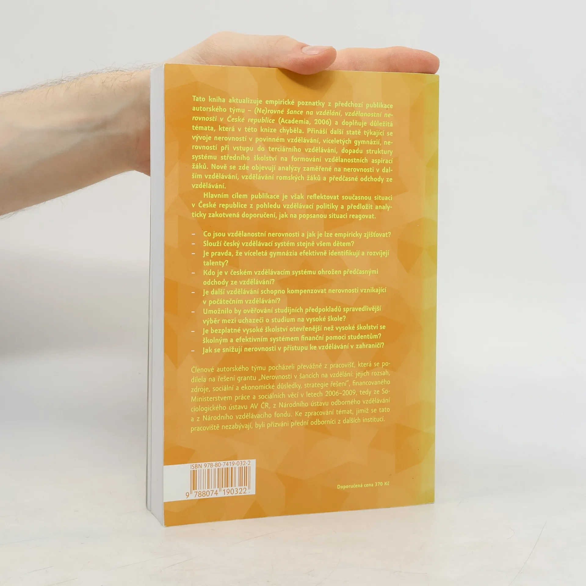 Kniha aktualizuje empirické poznatky z předchozí publikace autorského týmu a doplňuje důležitá témata, která v ní chyběla. Současná publikace přináší další statě zaměřené na vývoj nerovností v povinném vzdělávání, problematiku víceletých gymnázií, nerovnosti při vstupu do terciárního vzdělávání a dopad struktury středního školství na vzdělanostní aspirace žáků. Nově se objevují analýzy zaměřené na nerovnosti v dalším vzdělávání, vzdělávání romských žáků a předčasné odchody ze vzdělávání. Hlavním cílem je reflektovat současnou situaci v České republice z pohledu vzdělávací politiky a předložit alternativy řešení identifikovaných problémů. Publikace se ptá, co jsou vzdělanostní nerovnosti a jak je empiricky zjišťovat, zda český vzdělávací systém slouží stejně všem dětem, a zda víceletá gymnázia efektivně identifikují talenty. Dále zkoumá, kdo je ohrožen předčasnými odchody ze vzdělávání, zda další vzdělávání kompenzuje nerovnosti v počátečním vzdělávání, a jaký vliv má bezplatné vysoké školství na otevřenost vzdělávacího systému. Konečně se zabývá snižováním nerovností v přístupu ke vzdělávání v zahraničí.