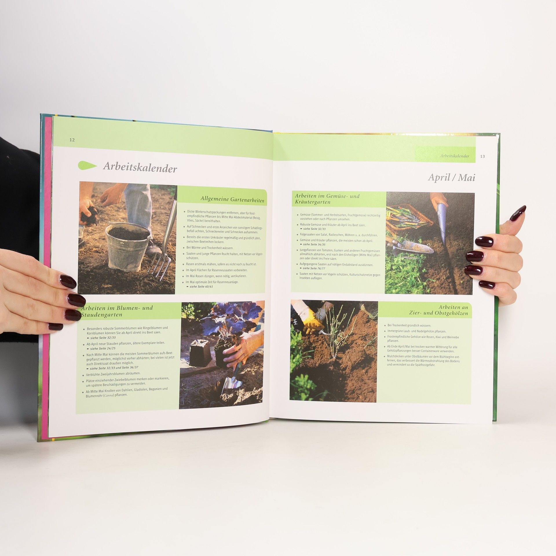 Wie bekommt man eigentlich einen grünen Daumen? Ganz einfach: Wie so oft kommt es auch bei der Gartenarbeit auf das richtige Timing an. Gewusst wann, heißt das Geheimrezept. Ob Zier- oder Nutzgarten: In diesem Ratgeber erfahren Sie genau, welche Gartenarbeit zu welchem Zeitpunkt im Gartenjahr am besten zu tun ist - von der Aussaat und Pflanzung über die Rasenpflege bis zu Ernte und Schnitt. Alle Themen sind reich bebildert und deshalb leicht nachvollziehbar. Die wichtigen Handgriffe und Arbeitsschritte sind detailliert Schritt für Schritt in Text und Bild erklärt. Porträts zu über 100 Ziergehölzen, Rosen, Stauden, Zwiebelblumen, Sommerblumen, Obst- und Gemüsearten sowie Kräutern helfen Ihnen bei der Auswahl Ihrer Lieblingspflanzen. Arbeitskalender geben einen zusätzlichen Überblick über das ideale Timing der Gartenarbeiten. Go green: Starten Sie in ein grünendes und blühendes Gartenjahr!