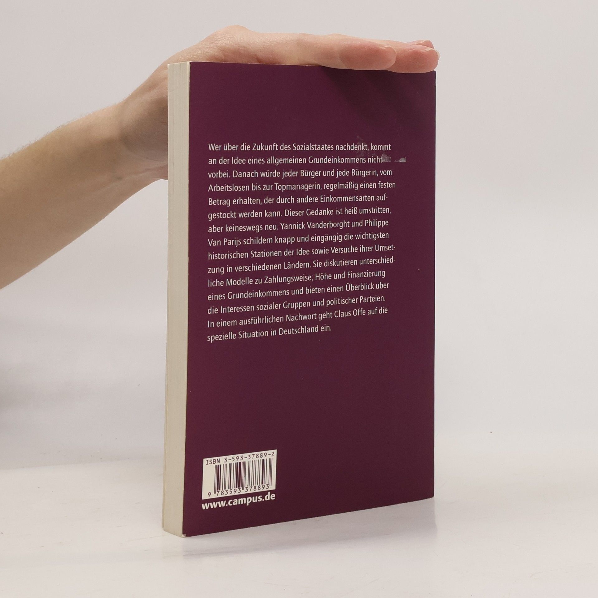 Wer über die Zukunft des Sozialstaates nachdenkt, kommt an der Idee eines allgemeinen Grundeinkommens nicht vorbei. Danach würde jeder Bürger und jede Bürgerin, vom Arbeitslosen bis zur Topmanagerin, regelmäßig einen festen Betrag erhalten, der durch andere Einkommensarten aufgestockt werden kann. Heiß umstritten, aber keineswegs neu ist dieser Gedanke. Yannick Vanderborght und Philippe Van Parijs schildern knapp und eingängig die wichtigsten historischen Stationen der Idee sowie Versuche ihrer Umsetzung in verschiedenen Ländern. Sie diskutieren unterschiedliche Modelle zu Zahlungsweise, Höhe und Finanzierung eines Grundeinkommens und bieten einen Überblick über die Interessen sozialer Gruppen und politischer Parteien. In einem ausführlichen Nachwort geht Claus Offe auf die spezielle Situation in Deutschland ein. Für die aktuellen Debatten über die soziale Sicherung liefert der Band unverzichtbare Informationen und Argumente.