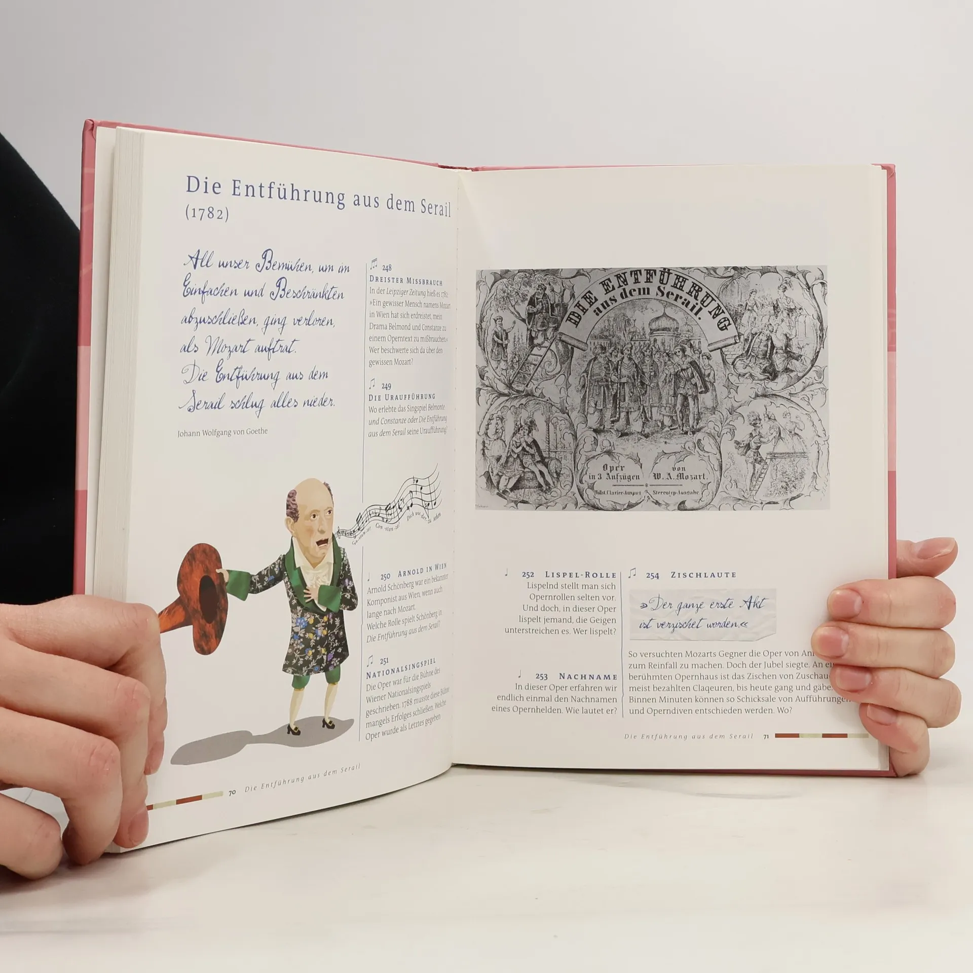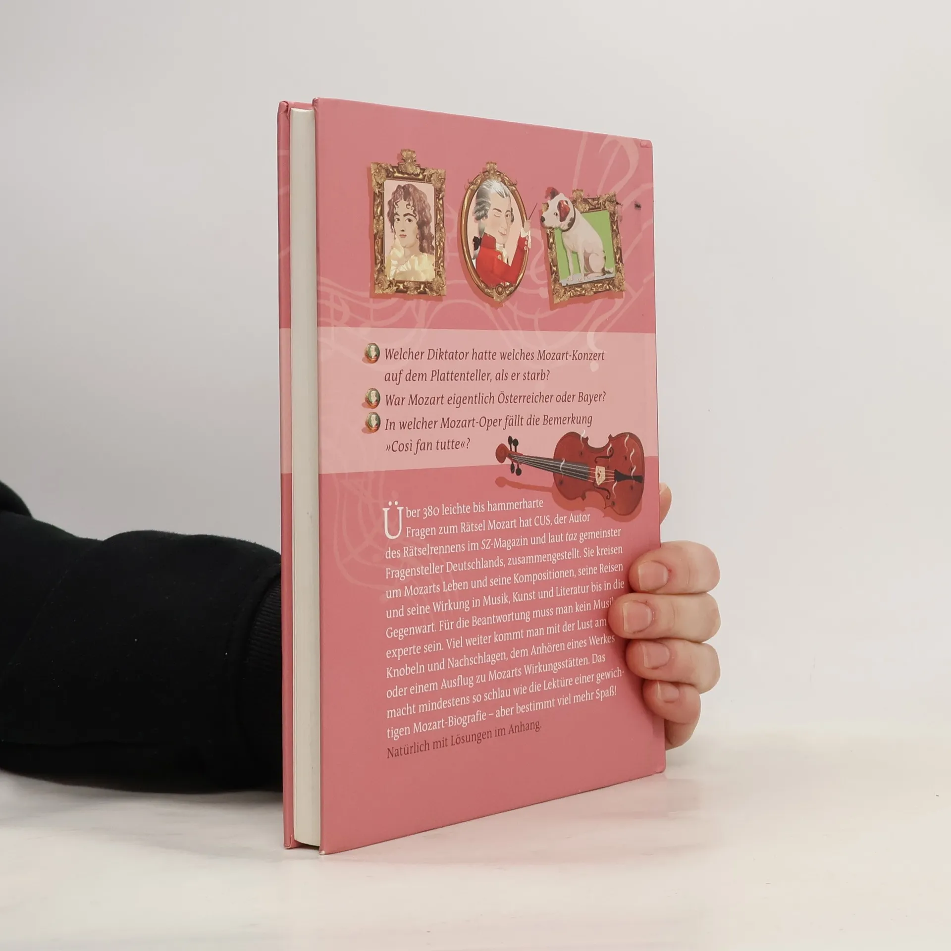 Das jährliche Rätselrennen im Magazin der „Süddeutschen Zeitung“ hat Kultstatus erreicht, und Rätsel des geheimnisvollen CUS in „GEO“, der „Zeit“ oder im „Stern“ ziehen zahlreiche Fans an, die allein oder in Gruppen über Lösungen brüten. Jetzt widmet sich der „gemeinste Fragensteller Deutschlands“ dem Rätsel Mozart und bietet eine unterhaltsame Form des Edutainment sowie eine spielerische Hommage an den genialen Musiker. In bewährter CUS-Manier werden Mozarts Leben, Werk, seine Frauen, Aufenthaltsorte und sein Einfluss auf Kunst und Literatur bis in die Gegenwart verrätselt. Auch nach ihm benannte Rocksongs oder Marzipankugeln können Teil der Fragen sein. Für die Beantwortung sind weder auswendig gelerntes Schulwissen noch musiktheoretische Kenntnisse erforderlich. Vielmehr sind Neugier, Lust am Knobeln und ein scharfer Blick auf die begleitenden Illustrationen gefragt. Manchmal hilft das Anhören eines Werkes oder ein Besuch an einer von Mozarts Wirkungsstätten. Lösungen finden sich am Ende des Buches. Von Kindern bis zu eingefleischten Mozart-Kennern kommen alle auf ihre Kosten, und wer sich hier durchrätselt, erlangt Wissen, das dem einer umfangreichen Mozart-Biografie ähnelt – jedoch mit viel mehr Spaß! „Eine Fundgrube an Mozart-Wissen!“ Hamburger Abendblatt.