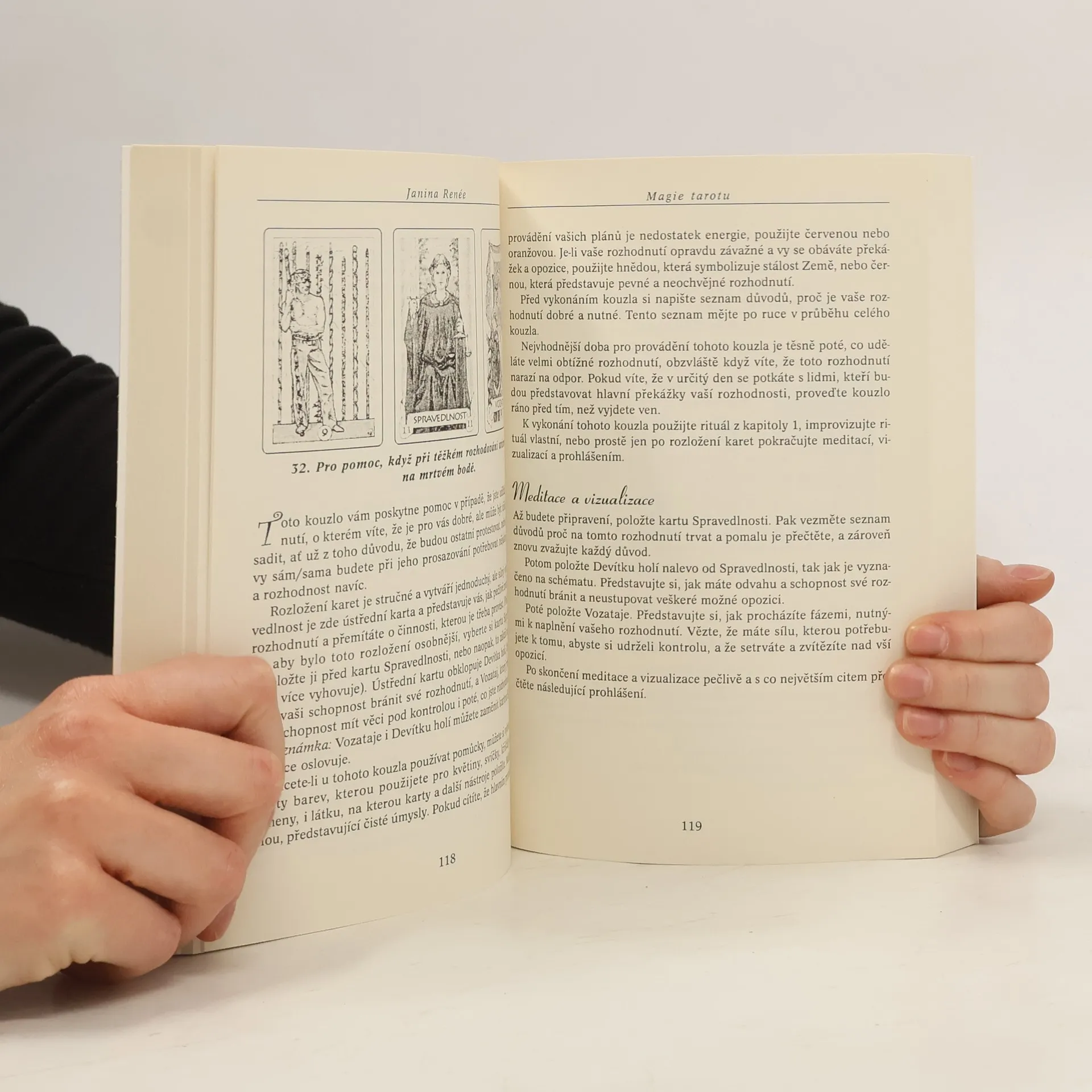 Klíč vaší budoucnosti je v kartách! Život je plný nejistoty. Táhne nás a tlačí mnoho protichůdných sil. Až příliš často mnmozí z nás cítí, že se stali „obětí“. Když však nad svou situací převezmete kontrolu, svět se náhle stane přátelským a přívětivým. Vaše sebevědomí se vzchopí, získáte větší sebejistotu a najednou nemáte strach skočit přes překážku. Nemusíte nic vědět o tarotu ani jak karty číst či vykládat. Vše, co k tarotovým kouzlům potřebujete, je balíček karet a tvůrčí rozpoložení mysli. Kouzla, imaginace a vnitřní ujištění mají skutečnou psychologickou moc a nabízejí příjemný i efektivní způsob, jak svůj život vést směrem, kterým opravdu chcete. Autorka Janina Renée má titul z antropologie a vědecky se zabývá tak různorodými obory, jako je folklór, starověké tradice, mytologie, magie, jungovská psychologie, jež všechny vnímá jako klíče, jimiž je možné upevňovat svůj vztah k pozitivním silám přírody.