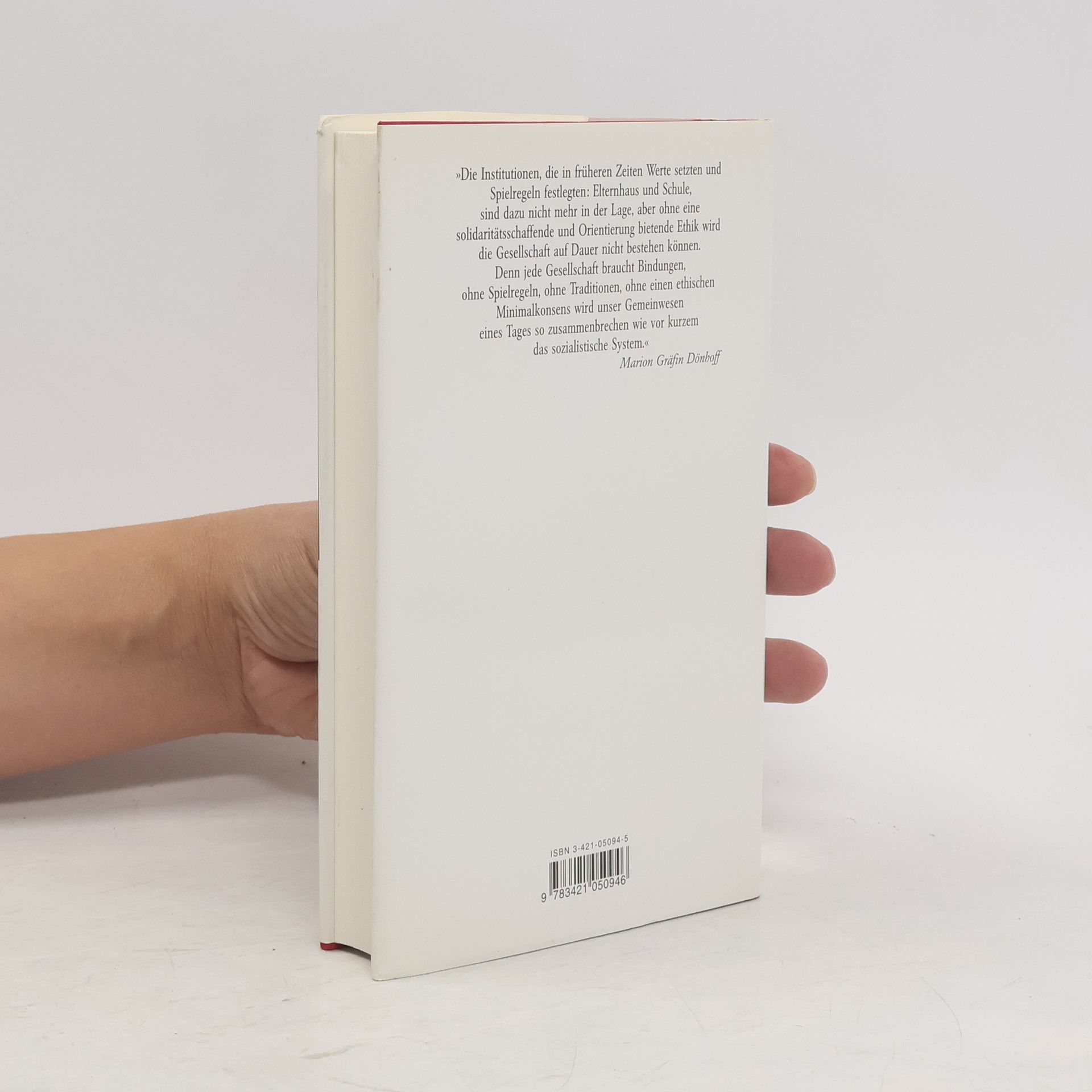 "Jede Gesellschaft braucht Bindungen. Ohne einen ethischen Minimalkonsens, der den Verhaltensnormen zugrunde liegt, wird unser Gemeinwesen eines Tages zusammenbrechen wie vor kurzem das sozialistische System..." Marion Gräfin Dönhoff warnt in ihrem Buch vor einem Egoismus, der vor nichts halt macht, vor Brutalität und Korruption, die unseren Alltag zunehmend bestimmen. Sie fordert dazu auf, die Fragen nach dem Sinn von Arbeit und Produktion neu zu stellen und ernsthaft zu diskutieren.