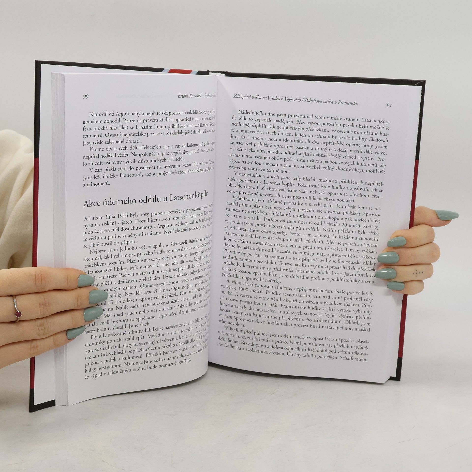 Ačkoli si většina čtenářů spojuje Rommela s jeho africkou kampaní za druhé světové války, v níž si vydobyl auru neporazitelnosti, první kroky ke své pověsti génia učinil již ve válce první. V této knize z roku 1935 popisuje své největší bitvy, ukazuje způsob, kterým je vyhrál, svou strategii a použití obrněných sil. Graficky znázorňuje rychlý postup svých jednotek, který jej proslavil jako agresivního velitele skvěle využívajícího jak terén, tak slabosti nepřítele. Tyto lekce válečného umění znal nejen každý německý velitel, ale staly se studijním materiálem i pro Pattona a další spojenecké velitele, kteří Rommela porazili. Erwin Johannes Eugen Rommel (15. listopadu 1891 - 14. října 1944) se narodil v Heidenheimu an der Brenz, otec byl ředitelem gymnázia a matka dcerou významného politika. Po studiu na reálném gymnáziu se stal kadetem a v roce 1911 nastoupil na důstojnickou školu v Gdaňsku. Za 1. světové války bojoval na západní frontě, pak v Rumunsku a Itálii, kde prokázal své nekonvenční myšlení a odvahu (vyznamenán Železným křížem 1914 za odvahu). Proslavil se v bitvě u Monte Matajur (říjen 1917), za níž byl vyznamenán nejvyšším pruským a německým vojenským vyznamenáním (Pour le Mérite). Od ledna 1918 sloužil na generálním štábu a byl povýšen do hodnosti kapitána. V meziválečném období se úspěšně věnoval zejména výcviku vojsk (velitel akademie), v roce 1939 byl povýšen do hodnosti generálmajora a stal se velitelem Hitlerova hlavního stanu. Za 2. světové války se účastnil tažení do France, bojů v Africe a Itálii a nakonec obrany francouzského pobřeží při invazi. Po neúspěšném spiknutí proti Hitlerovi spáchal 14. října 1944 sebevraždu. Maršál Rommel popisuje svá vítězství dosažená za první světové války, jež založila jeho pověst vojenského génia. Přibližuje taktiku, metody a zásady, které v bojích použil.