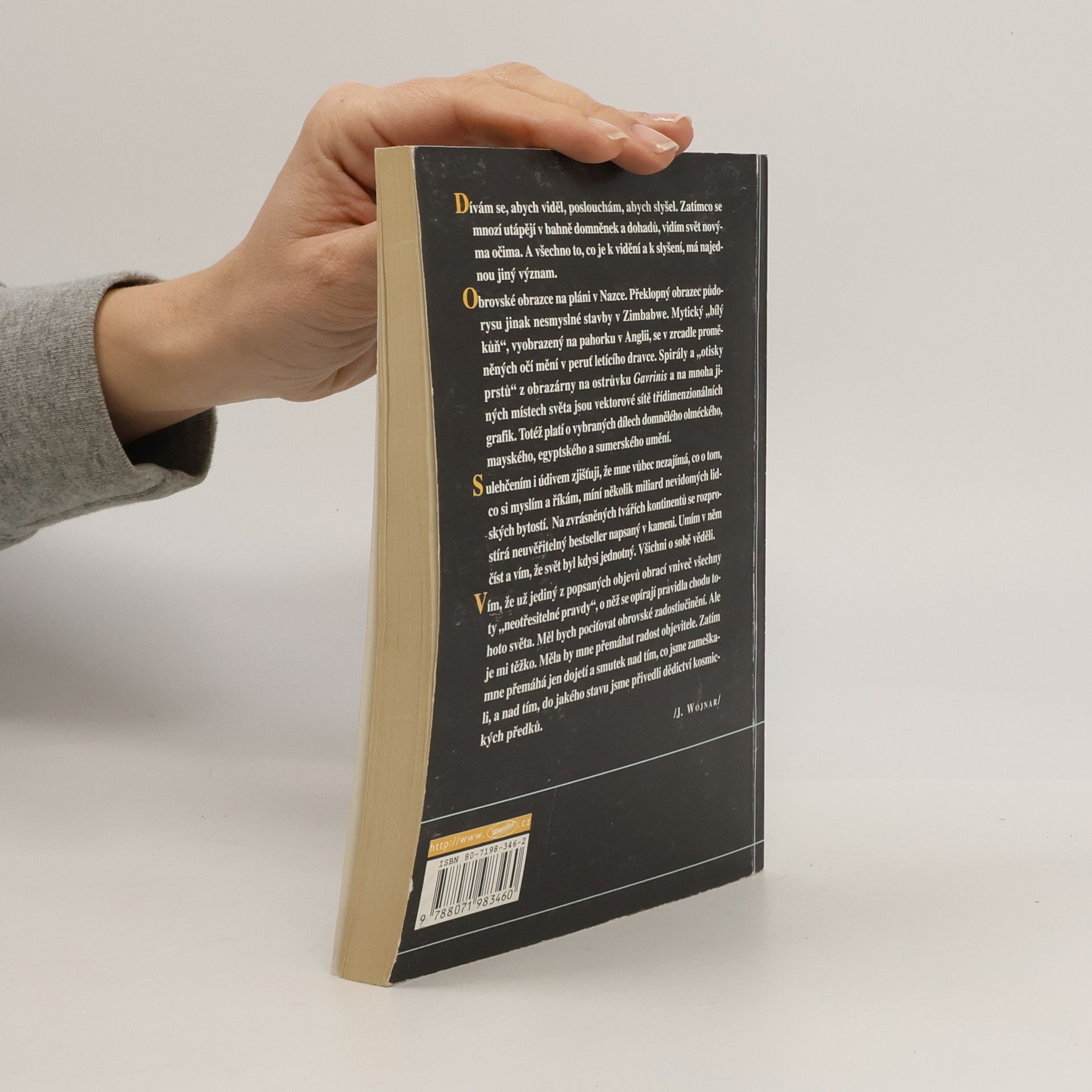 Kde leží původní zdroje mýtů a legend starověku? Tato kniha nabízí možnou odpověď, přičemž naznačuje, že informace, které hledáme, jsou již dlouhá staletí kolem nás. Ti, kdo odešli před dávnými věky, nezanechali přímé informace, ale zapsali je do "kamenné knihy" kolem nás. Tajemství spočívá v anagrafech, což jsou plastické útvary nebo grafiky skrývající neviditelné informace. Autor Jiří Mašek vysvětluje, že anagraf může mít různé formy, od kreseb po stavební plány, které, pokud jsou správně interpretovány, odhalují technické nákresy a další skryté informace. Dvoudílná kniha se zaměřuje na anagrafech a poskytuje návody k jejich "luštění", doplněné fotografiemi a ilustracemi. Jiří Wojnar, autor knih o hluboké minulosti lidstva a pravěkých civilizacích, se opírá o biblické texty, přičemž jeho díla nejsou určena pro lehké čtení, ale spíše pro studium. Znalost Bible je při čtení Wojnarových knih žádoucí, neboť slouží jako historický dokument, nikoli náboženský text. Wojnar kritizuje křesťanské církve za jejich zaslepenost a destrukci starých písemností, stejně jako oficiální vědu, která často hlásá nepravdy, aby udržela zažité teorie. Jeho práce vyzývá k přehodnocení dogmat a otevřenosti novým myšlenkám.