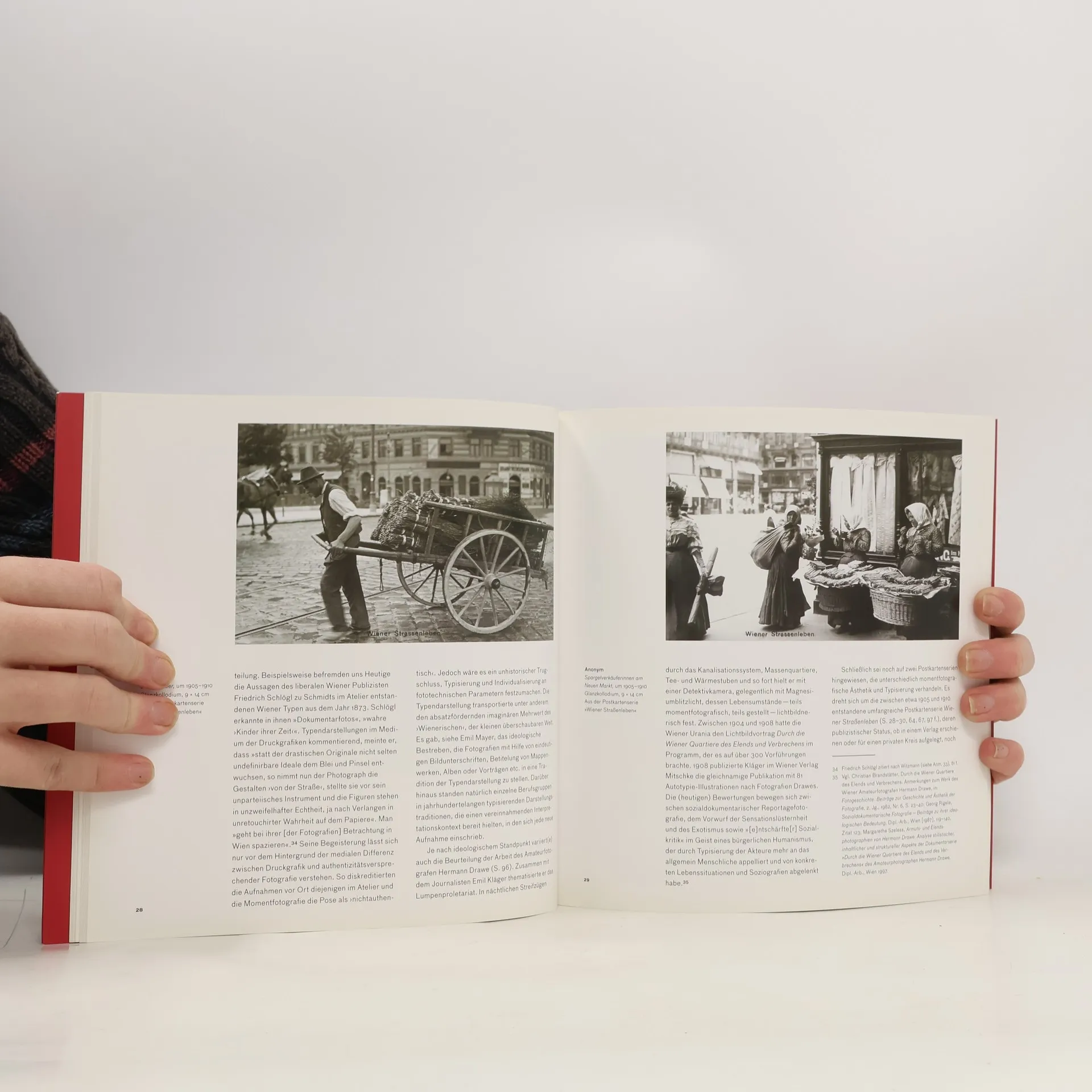 Nostalgische „Augenblicksbilder“ geben einen Eindruck vom Wiener Stadtleben und des Alltags unterschiedlicher gesellschaftlicher Gruppen: solcher, die auf der Straße arbeiten, anderer, die sich im Prater oder beim Rennsport in der Freudenau vergnügen. Flaneuren gleich tauchten Berufs- wie Amateurfotografen ins Treiben der Großstadt ein, ihr suchender Blick interessierte sich zuallererst für alltägliche Szenen auf den hektischen Wiener Boulevards und Plätzen sowie an der Peripherie. Diese fotografischen Skizzen dokumentieren das Leben unterschiedlicher gesellschaftlicher Gruppen: solcher, die auf der Straße arbeiten und zum Teil auch leben müssen, anderer, die sich im Wurstelprater oder beim Rennsport in der Freudenau vergnügen. So trägt die Fotografie ihren Anteil an der Entstehung der Vorstellung von „Masse“ als soziales Phänomen. Das Buch erscheint als Teil der Serie „Beiträge zur Fotogeschichte in Österreich“, mit der erstmals systematisch die Geschichte der österreichischen Fotografie aufgearbeitet wird.