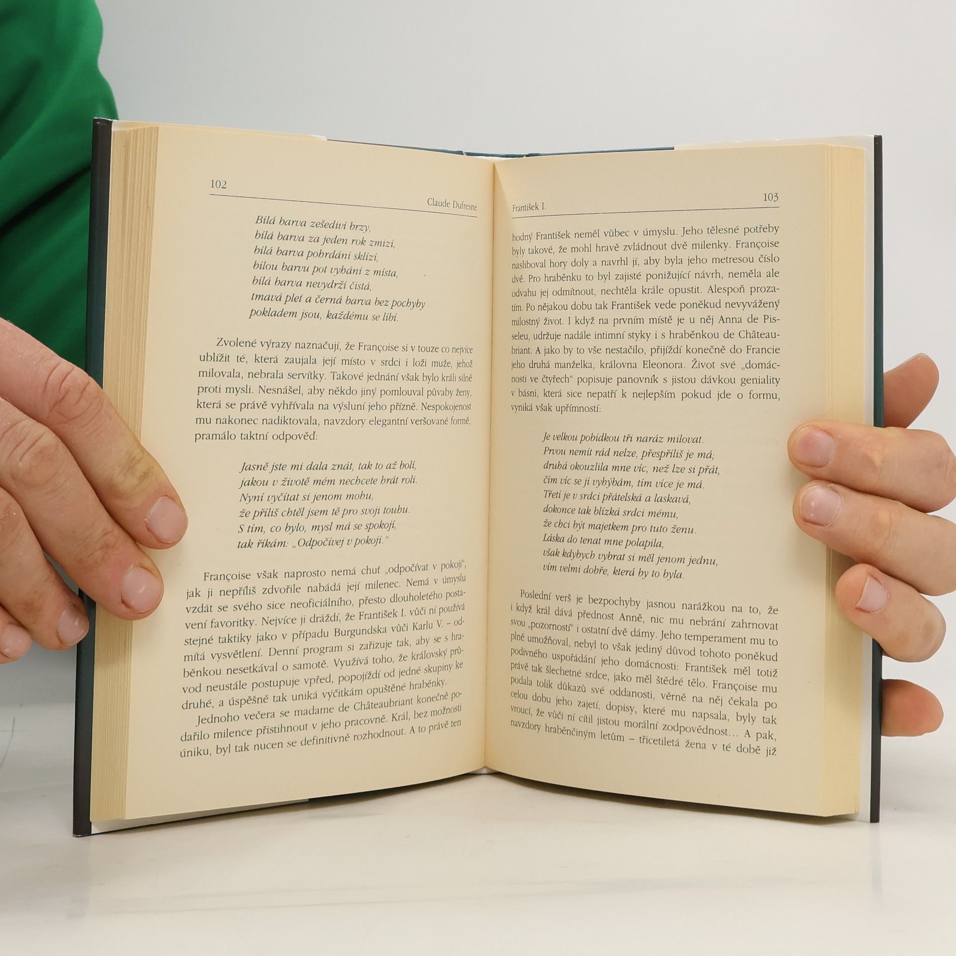 Významný francouzský historik líčí francouzského krále jako renesančního člověka v pravém slova smyslu: milujícího život se všemi jeho klady i zápory. František I. proslul jako obratný politik, vzdělanec a ctitel umění - a také jako vášnivý milenec řady žen. Claude Dufresne čtenáře zasvěceně provází jedním z nejzajímavějších období evropské historie a ve vztahu k Františkovi nám představuje i řadu významných osobností: Karla V., Jindřicha VIII., Marii Tudorovnu a řadu dalších. Autor předkládá fundované historické dílo, opírající se o seriózní historické prameny, ale nikoli suchopárnou dějepisnou studii. Jeho živý vypravěčský styl vhodně doplňují úryvky z děl francouzských renesančních básníků.