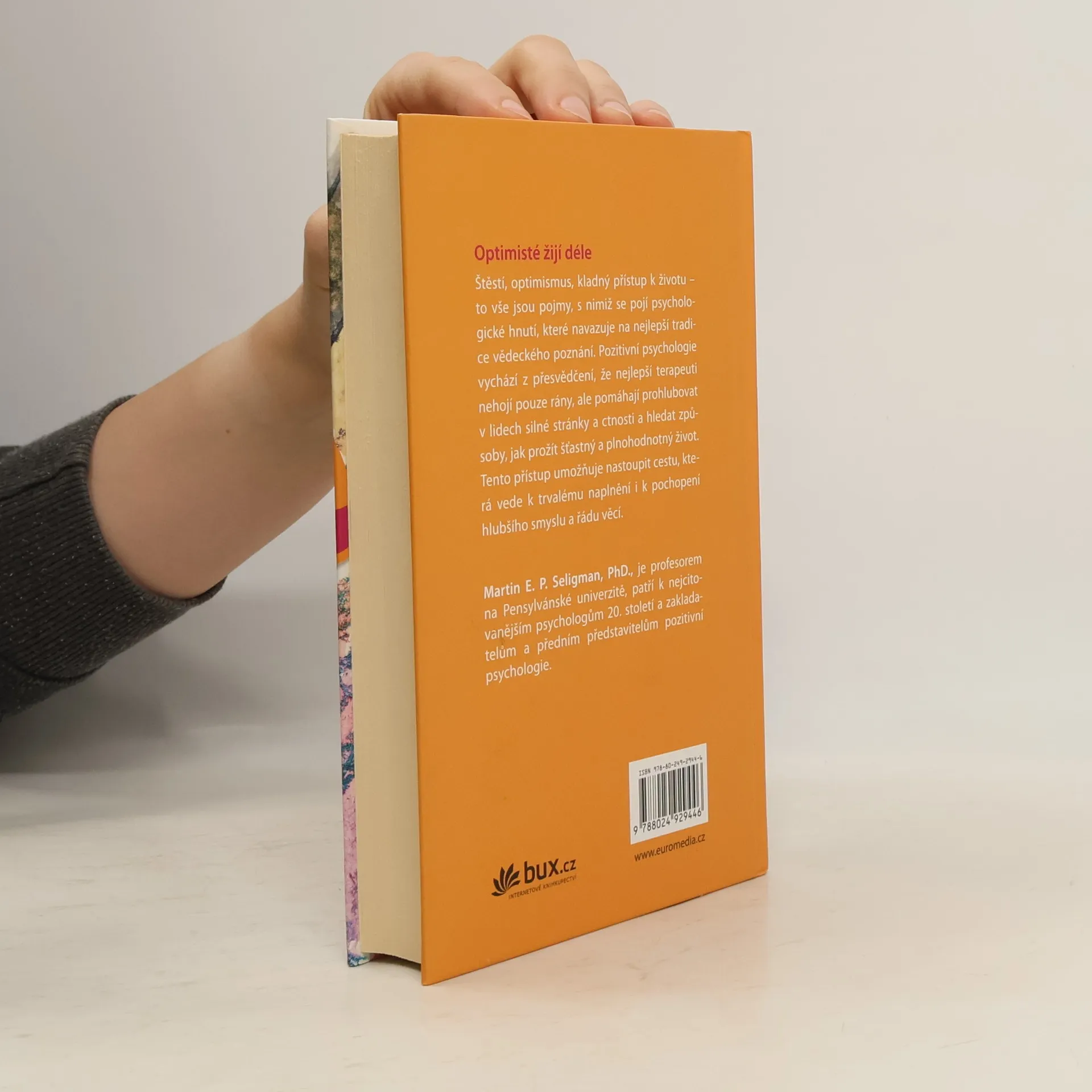 Optimisté žijí déle. Štěstí, optimismus, kladný přístup k životu - to vše jsou pojmy, s nimiž se pojí zcela nové psychologické hnutí, které navazuje na nejlepší tradice vědeckého poznání. Objevilo se až na sklonku 20. století a naši čtenáři mají možnost se s ním seznámit vůbec poprvé. Psychologie dosud pozitivní stránky osobnosti značně zanedbávala, a tak hlavním cílem nového směru je nerovnovážný stav napravit a těžce získané znalosti o utrpení a duševních chorobách doplnit větším množstvím poznatků o kladných emocích. Pozitivní psychologie vychází z přesvědčení, že nejlepší terapeuti nehojí pouze rány, ale pomáhají prohlubovat v lidech silné stránky a ctnosti a hledat způsoby jak prožít šťastný a plnohodnotný život. Tento přístup umožňuje nastoupit cestu, která vede k trvalému naplnění i k pochopení hlubšího smyslu a řádu věcí.