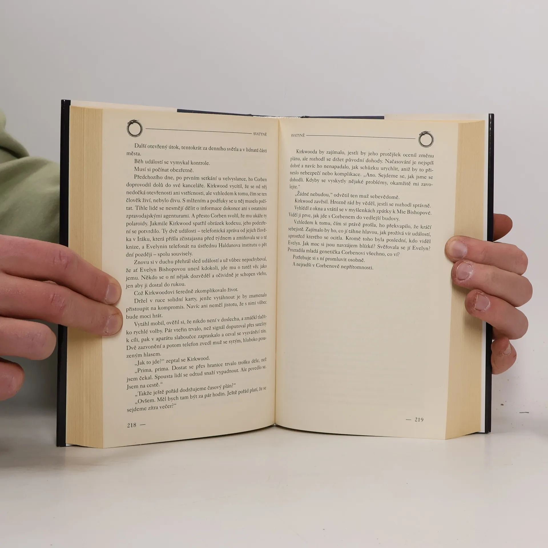 Dobrodružný thriller úspěšného libanonského autora se odehrává koncem 18. století i v současnosti. Jádro příběhu tvoří odvěká touha lidstva dožít se vysokého věku, oddálit přirozený proces stárnutí, nalézt zázračný elixír života. Hlavnímu hrdinovi se to podařilo, je však po mnoho let nucen měnit svou identitu, místo pobytu a prchat před nepřáteli, kteří touží recept na dlouhověkost získat. Naposledy byl spatřen v Neapoli roku 1750. V roce 2003 se americkým jednotkám podaří vypátrat skrytou laboratoř, kde tajemný vědec prováděl na lidech zrůdné pokusy. Jediným vodítkem k vyřešení záhady se stává starobylý symbol hada požírajícího vlastní ocas.