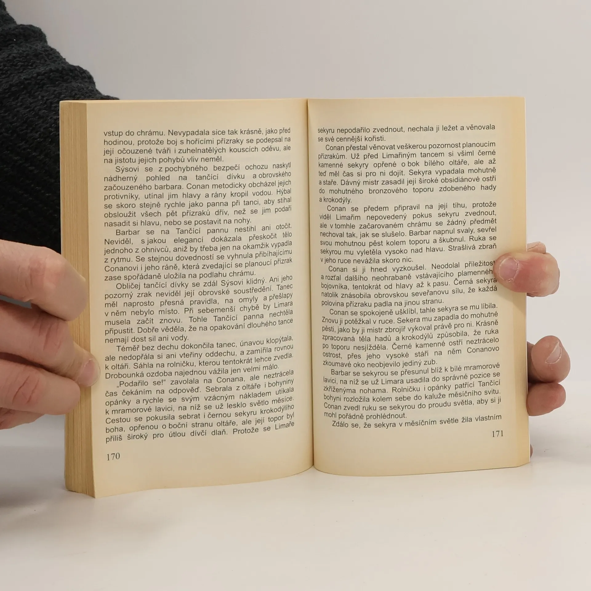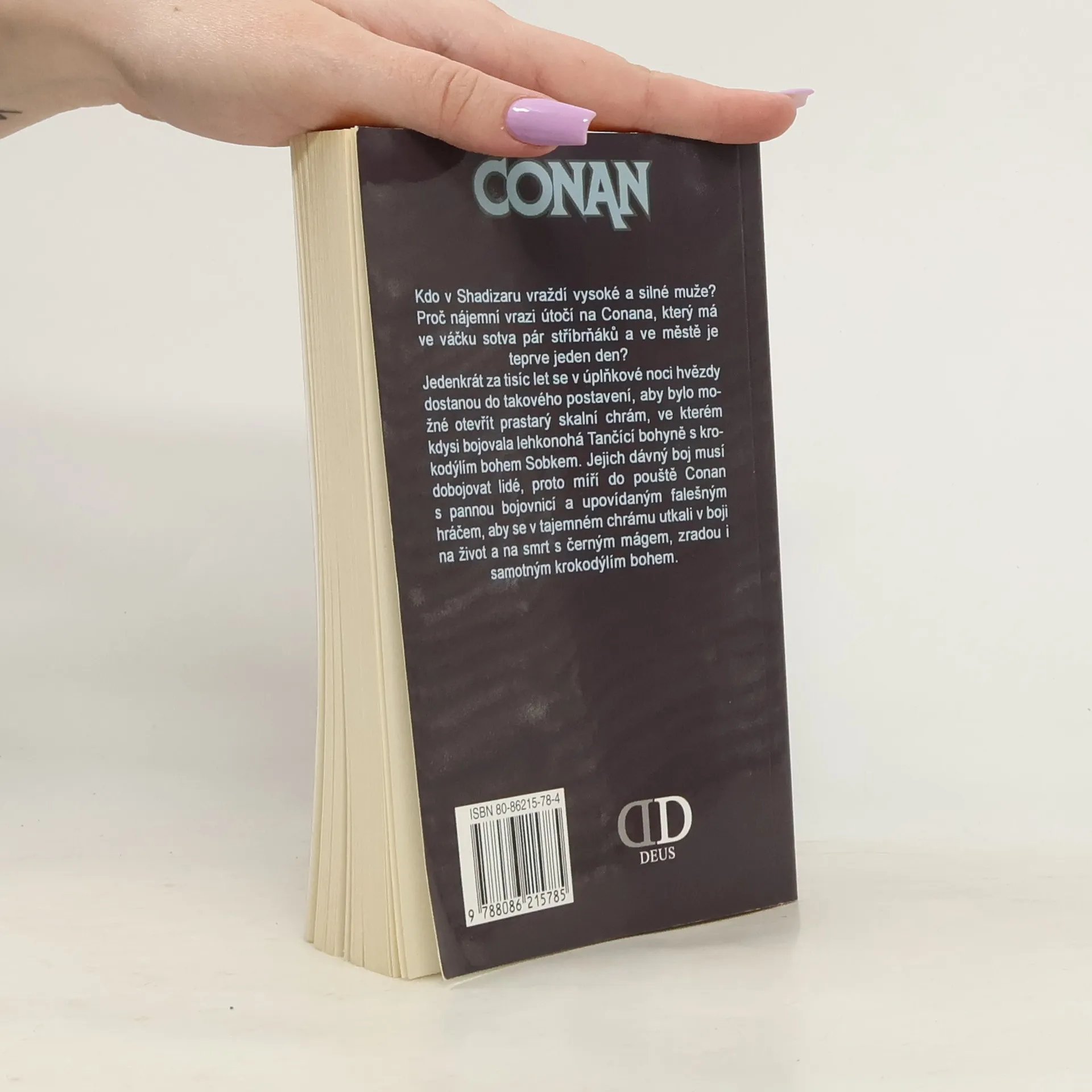 Kdo v Shadizaru vraždí vysoké a silné muže? Proč nájemní vrazi útočí na Conana, který má ve váčku sotva pár stříbrňáků a ve městě je teprve jeden den? Jedenkrát za tisíc let se v úplňkové noci hvězdy dostanou do takového postavení, aby bylo možné otevřít prastarý skalní chrám, ve kterém kdysi bojovala lehkonohá Tančící bohyně s krokodýlím bohem Sobkem. Jejich dávný boj musí dobojovat lidé, proto míří do pouště Conan s pannou bojovnicí a upovídaným falešným hráčem, aby se v tajemném chrámu utkali v boji na život a na smrt s černým mágem, zradou i samotným krokodýlím bohem.