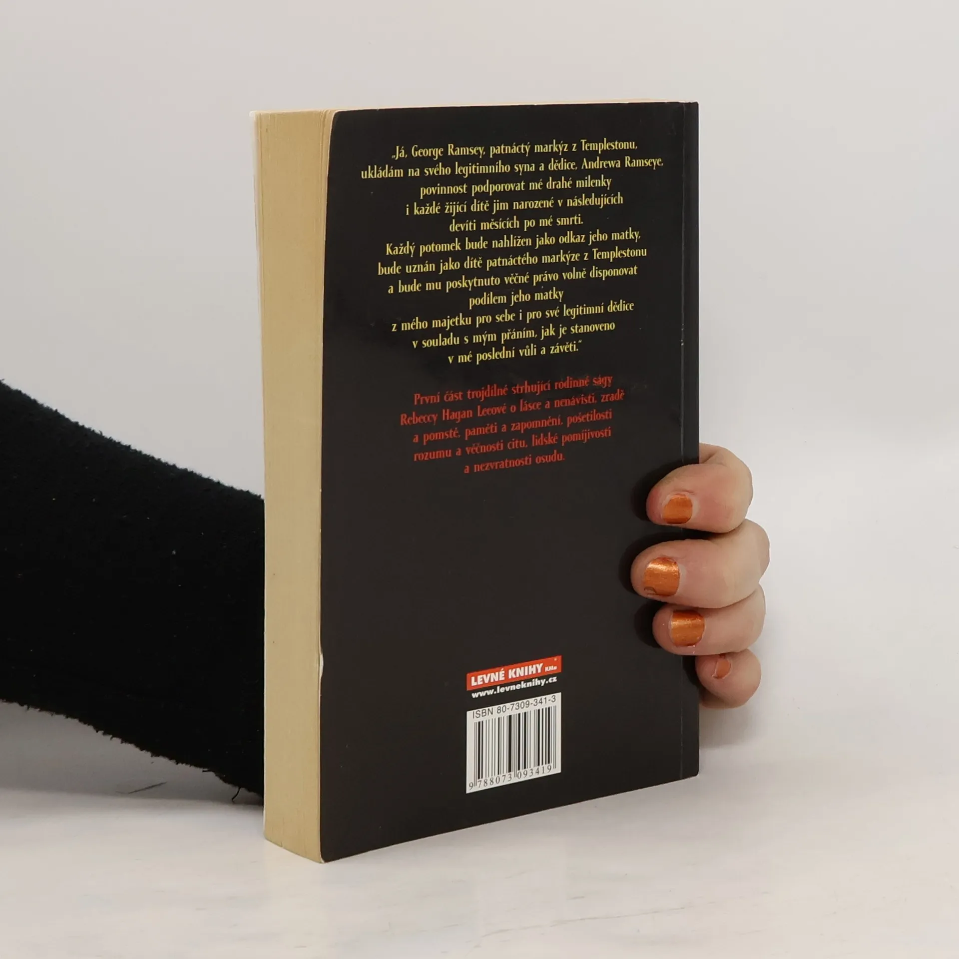 „Já, George Ramsey, patnáctý markýz z Templestonu, ukládám na svého legitimního syna a dědíce, Andrewa Ramseye, povinnost podporovat mé drahé mílenky i každé žijící dítě jím narozené v následujících devíti měsících po mé smrti. Každý potomek bude nahlížen jako odkaz jeho matky, bude uznán jako dítě patnáctého markýze z Templestonu a bude mu poskytnuto věčné právo volně disponovat podílem jeho matky z mého majetku pro sebe i pro své legitimní dědice v souladu s mým přáním, jak je stanoveno v mé poslední vůli a závěti." První část trojdílné strhující rodinné ságy Rebeccy Hagan Leeové o lásce a nenávisti, zradě a pomstě, paměti a zapomnění, pošetilosti rozumu a věčnosti citu, lidské pomíjivosti a nezvratnosti osudu.