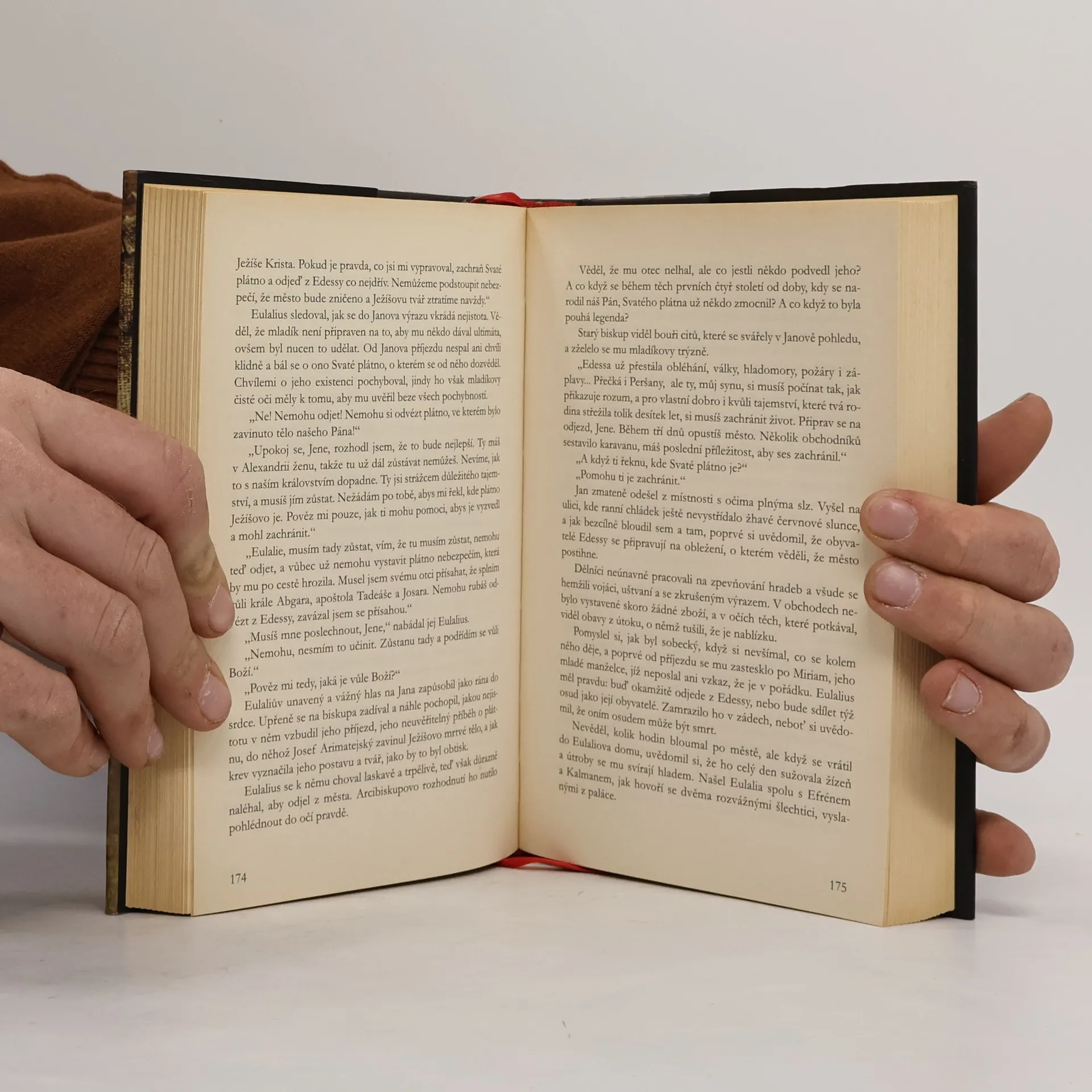 Temné tajemství, záhada plátna, do něhož bylo kdysi zavinuto tělo Ježíše Nazaretského, se zrodila v Palestině a prochází Byzantskou říší, středověkými templářskými hrady v Palestině, Francii a Portugalsku, aby se v současnosti stala předmětem krvavého sporu mezi tajnou křesťanskou sektou z turecké Edessy a ještě utajenějšími pokračovateli a dědici více... templářských tradic. Autorka nás s úžasnou schopností vykreslit nejen prostředí, ale i charaktery postav provede prakticky po celém světě, celými moderními dějinami. Příběh vyvrcholí v turínských katakombách, kde se nenávratně (a naprosto nečekaně) uzavřou osudy několika hlavních hrdinů. Fascinující thriller, který se stal bestsellerem již v celé Evropě a právě si podmaňuje Ameriku.... celý text